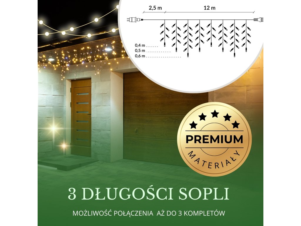 - jégcsapok hossza: 40, 50, 60 cm