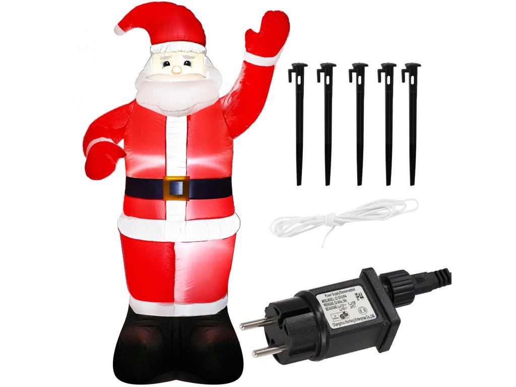- A készlet tartalma: 1 x Mikulás figura, 5 x rögzítő tüskék, 2 x rögzítő zsinór, 2 x figura súlyozása