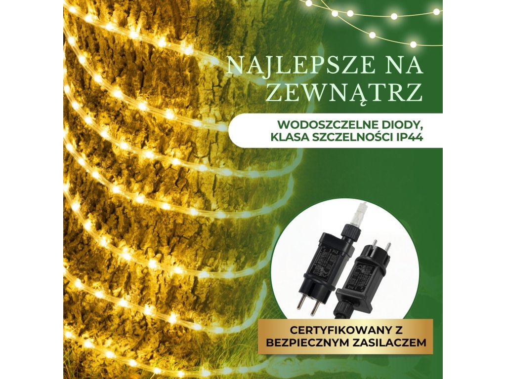 - Szett hossza: 21,5 m (világító szakasz 20 m + kábel + dugó)