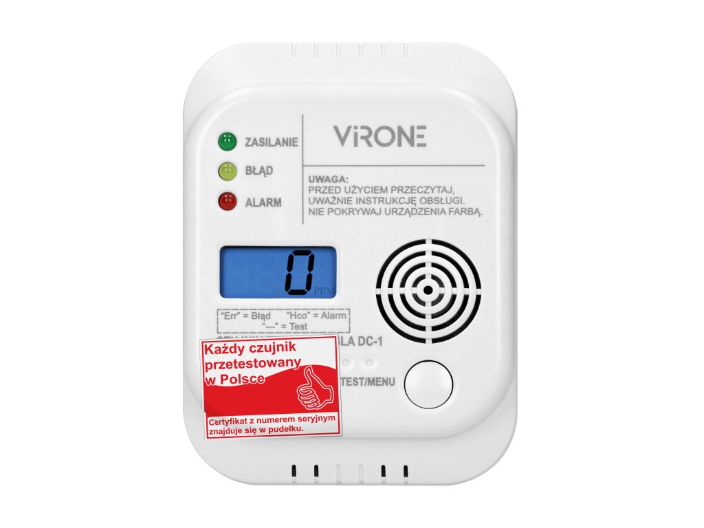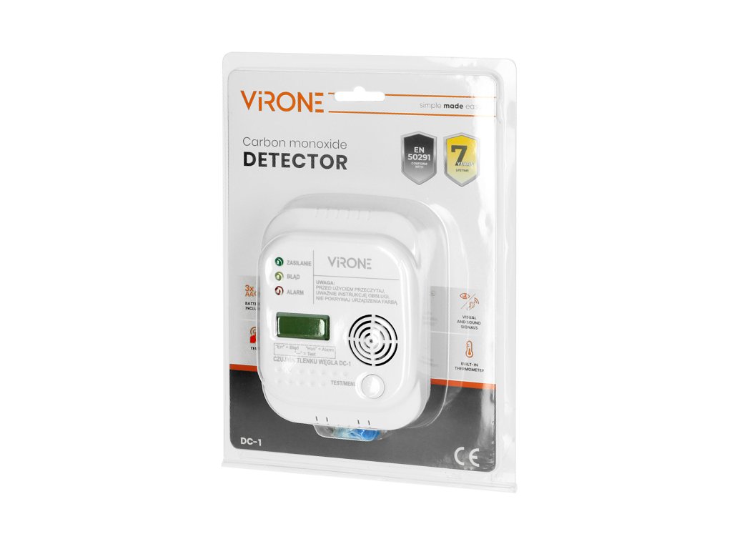 Ennek a modern riasztóberendezésnek a célja a szén-monoxid-koncentráció folyamatos ellenőrzése és az értékek jelentése a háttérvilágítású LCD-kijelzőn. Kiváló minőségű elektrokémiai érzékelővel van felszerelve, és hang- és fényjelzést is ad. A tesztgomb lehetővé teszi a készülék helyes működésének ellenőrzését és a riasztás elhallgattatását. A szén-monoxid-koncentráció 25 ppm és 550 ppm között mérhető, és a készülék megjegyzi a legutóbbi, riasztást kiváltó értéket. Ez az érzékelő alacsony elemszintet jelez, -15 °C és 50 °C közötti környezeti hőmérsékletet mutat, és beépített automatikus frissítő rendszerrel rendelkezik. Megfelel az EN 50291-1:2010/A1:2012 szabványnak. A belső érzékelő átlagos élettartama körülbelül 7 év, és az élettartam végét a készülék hangjelzéssel (hangjelzés) és vizuálisan (kijelző, LED) jelzi. Minden érzékelőt Lengyelországban teszteltek, és egyedi tanúsítvánnyal rendelkezik, amely tartalmazza a termék sorozatszámát.Kiegészítő paraméterek