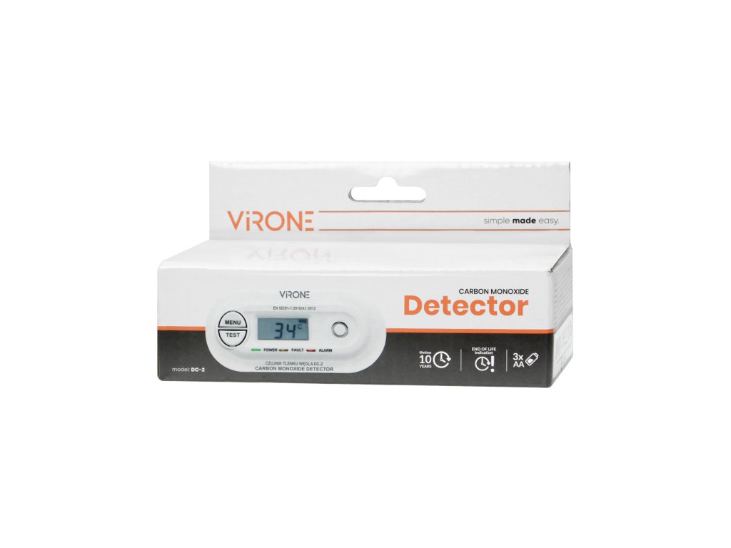 Ennek a modern riasztóberendezésnek a célja a szén-monoxid-koncentráció folyamatos ellenőrzése és az értékek jelentése a háttérvilágítású LCD-kijelzőn. Kiváló minőségű elektrokémiai érzékelővel van felszerelve, és hang- és fényjelzést is ad. A tesztgomb lehetővé teszi a készülék helyes működésének ellenőrzését és a riasztás elhallgattatását. A szén-monoxid-koncentráció 25 ppm és 600 ppm között mérhető, és a készülék megjegyzi a riasztást kiváltó utolsó értéket. Ez az érzékelő alacsony elemszintet jelez, -15 °C és 50 °C közötti környezeti hőmérsékletet mutat, és beépített automatikus frissítő rendszerrel rendelkezik. Megfelel az EN 50291-1:2010/A1:2012 szabványnak. A belső érzékelő átlagos élettartama kb. 10 év, és az élettartam végét hangjelzés (hangjelzés) és vizuális jelzés (kijelző, LED) jelzi.Kiegészítő paraméterek
