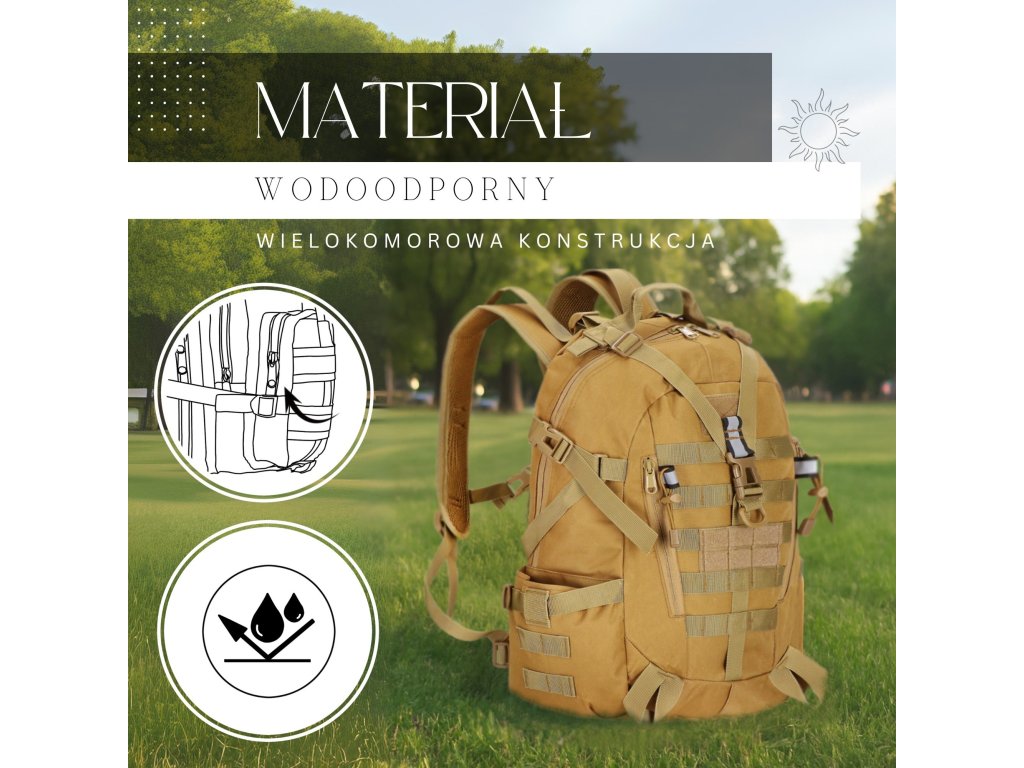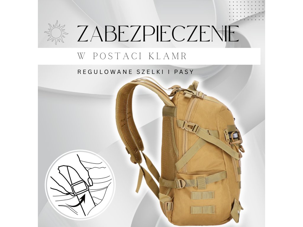 - Kompressziós szíjak a fő részben és a hátizsák oldalain