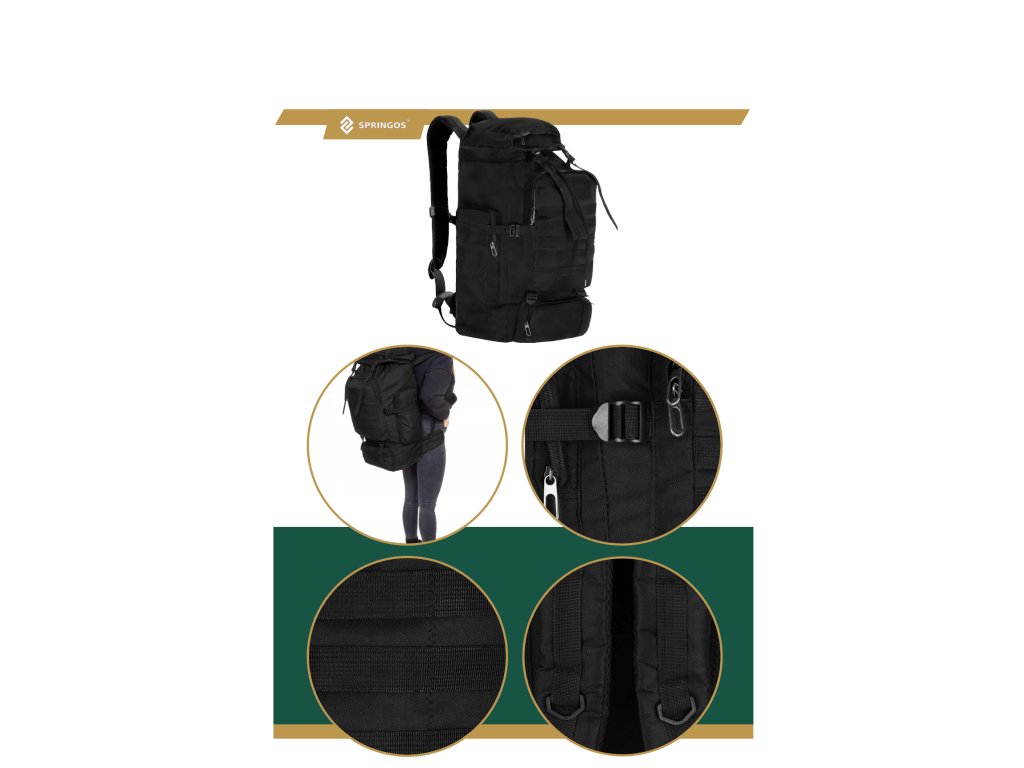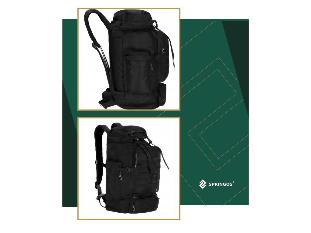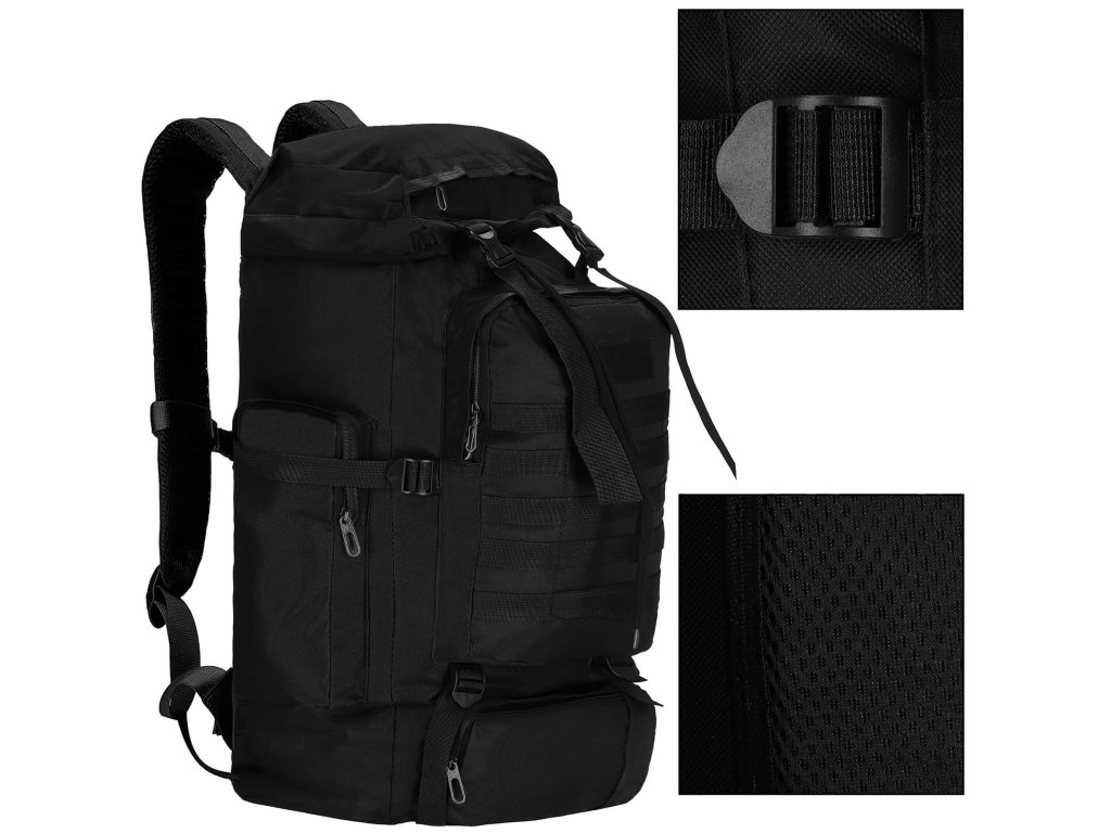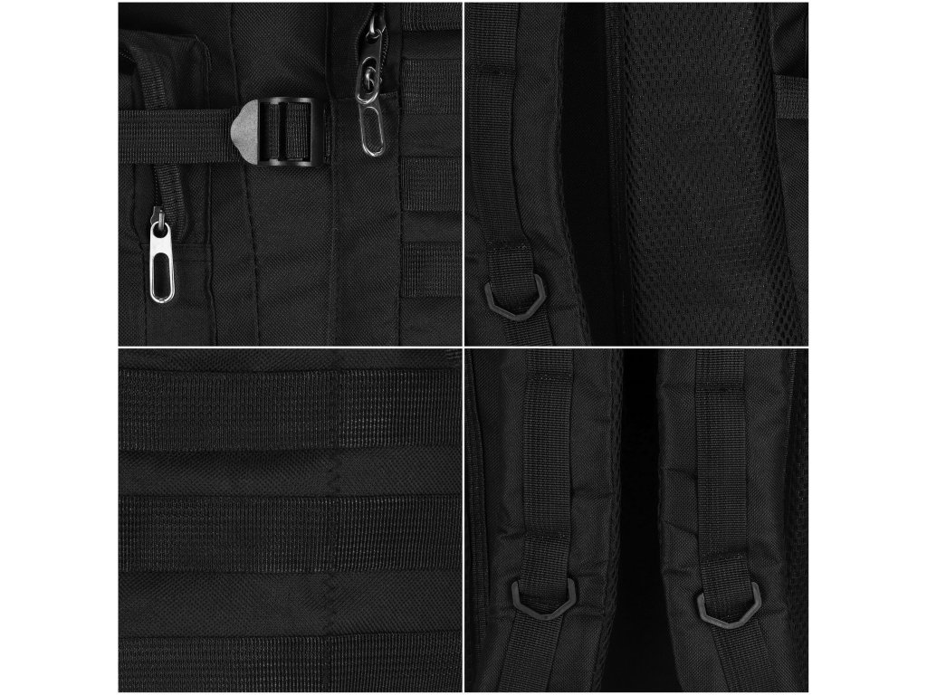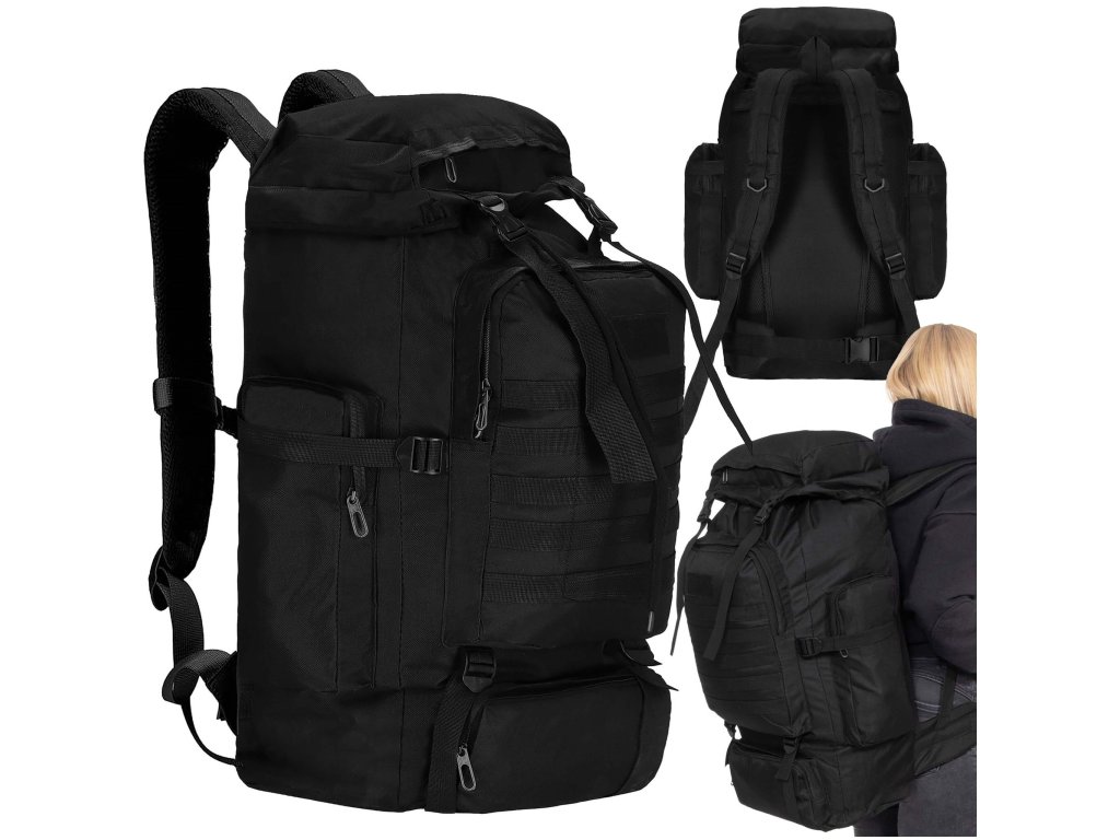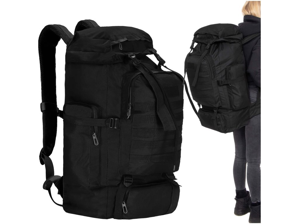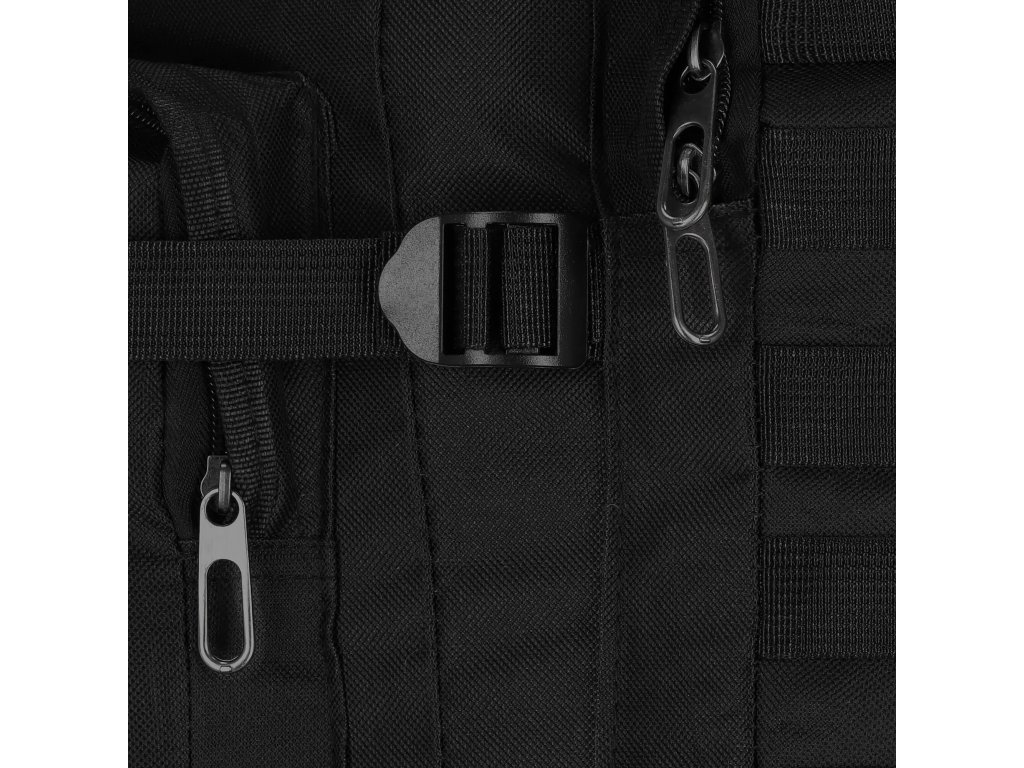- Fő rekesz húzózsinórral és kompressziós szíjakkal ellátott fedéllel zárva