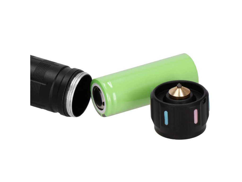 - A készlet tartalmazza az akkumulátort, amit a lámpa belsejébe kell helyezni, a végének kicsavarásával