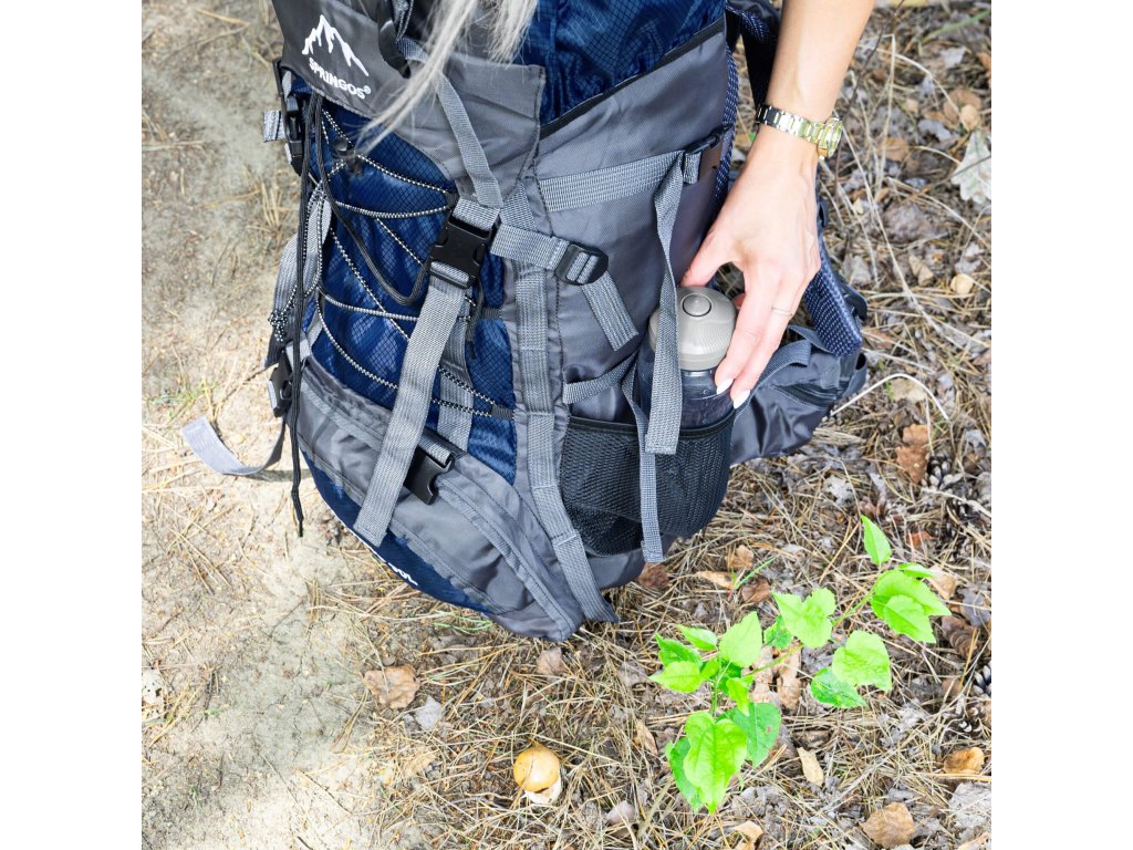 - A felső részen, az elülső fedélen fehér Springos logó hímzett, az alsó részen a TREKKING 90L felirat található.