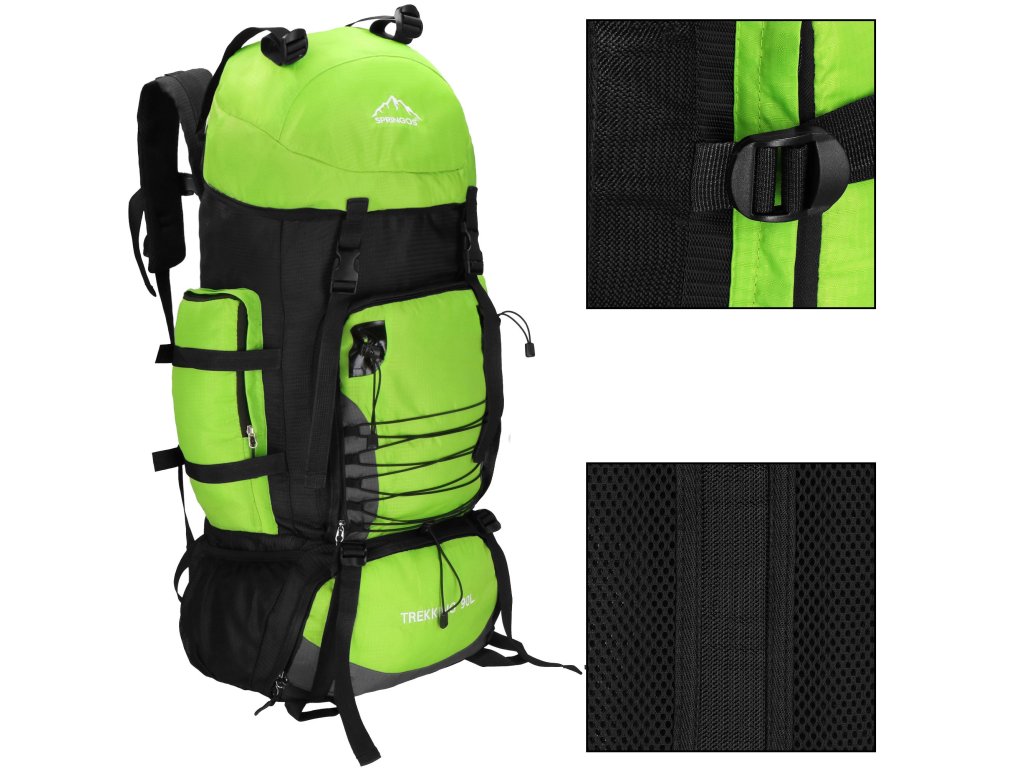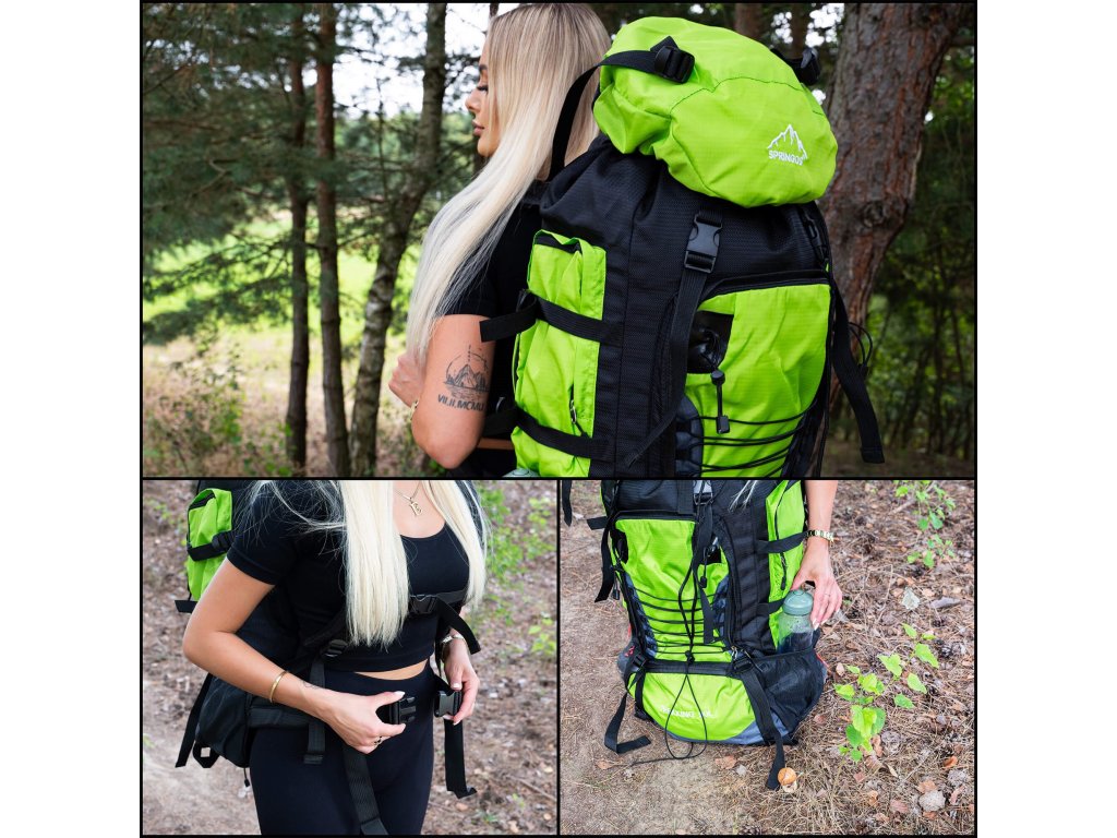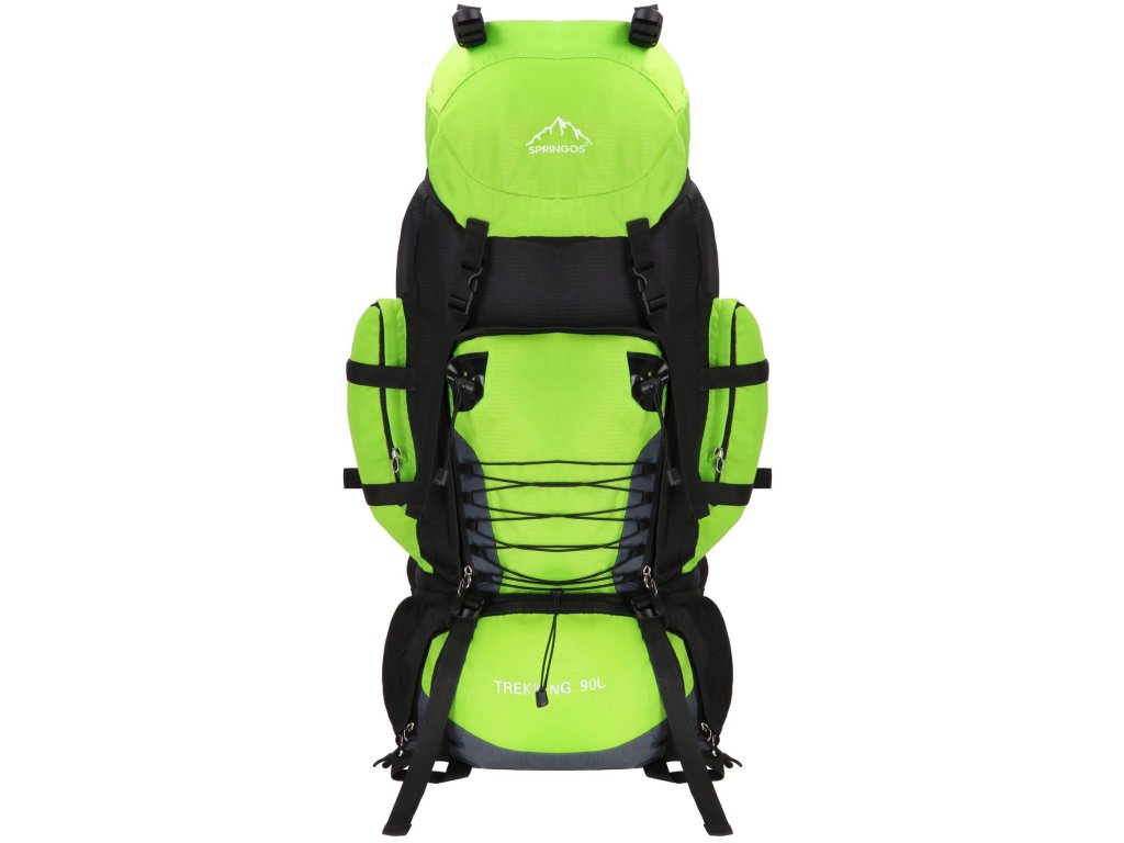 - Felső fedél elülső részén fehér Springos logó hímzéssel, alsó részén TREKKING 90L felirat.