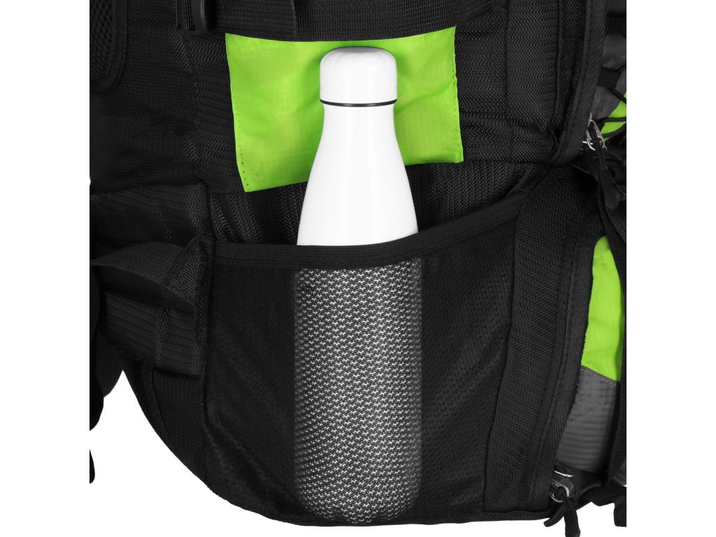- Mindkét oldalon oldalzsebek hálóból, valamint cipzárral zárható oldalzsebek.