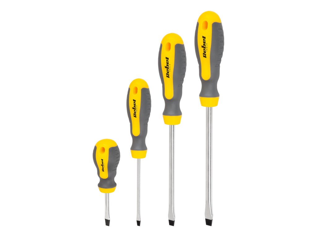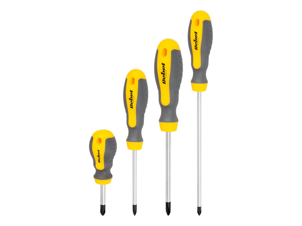 A Rebel Tools egy 8 csavarhúzóból álló készletet kínál, amely ideális minden műhelyben. A kombináció sokoldalúságát a kétféle csavarhúzó kiemeli: lapos és Phillips. Az ergonomikus nyélnek köszönhetően a Rebel Tools csavarhúzók tökéletesen illeszkednek a kezébe, és a korrózió- és rozsdaálló króm-vanádium acélnak köszönhetően igazán hosszú ideig szolgálják Önt.