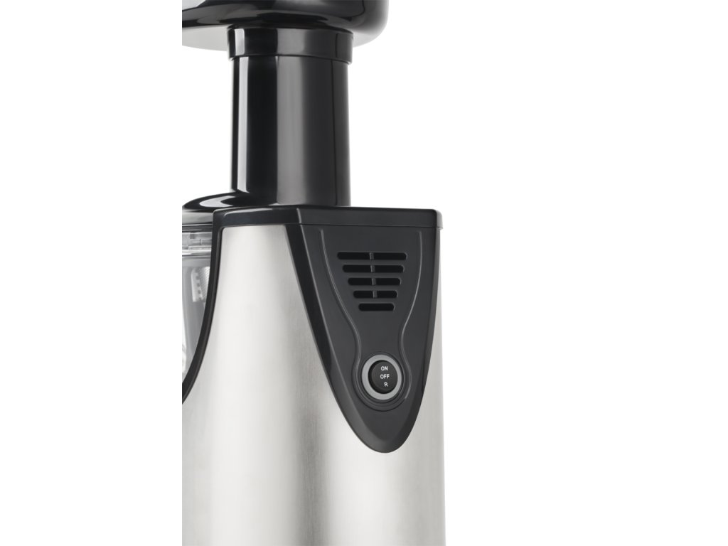 Az egycsavaros rendszer, a 150 W-os teljesítmény és a 65 fordulat/perc fordulatszám garantálja a nagy teljesítményt, így mindig a maximális mennyiségű levet préselheti ki. Előnyt jelent a hátrameneti fokozat, amely segít a gép felszabadításában, ha például egy gyümölcsmag blokkolja munka közben.