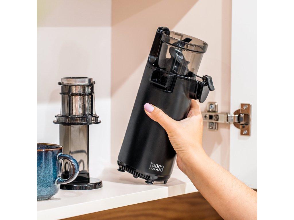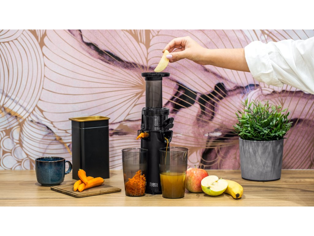 A lassú fordulatszámú gyümölcs- és zöldségcentrifugákat a gyermekeik egészségével törődő anyák, valamint az egészséges és aktív életmódot folytató emberek értékelik. Ha azon gondolkodik, hogy érdemes-e lassú forgású gyümölcscentrifugát vásárolni, nézze meg a Teesa TSA3233 gyümölcscentrifugát. Az általa préselt lé kevésbé oxigéndús, és sok tápanyagot tartalmaz. Fontos, hogy a gyártása során felhasznált anyagok biszfenolmentesek, ami különösen fontos a facsart gyümölcslé egészségügyi előnyei miatt.