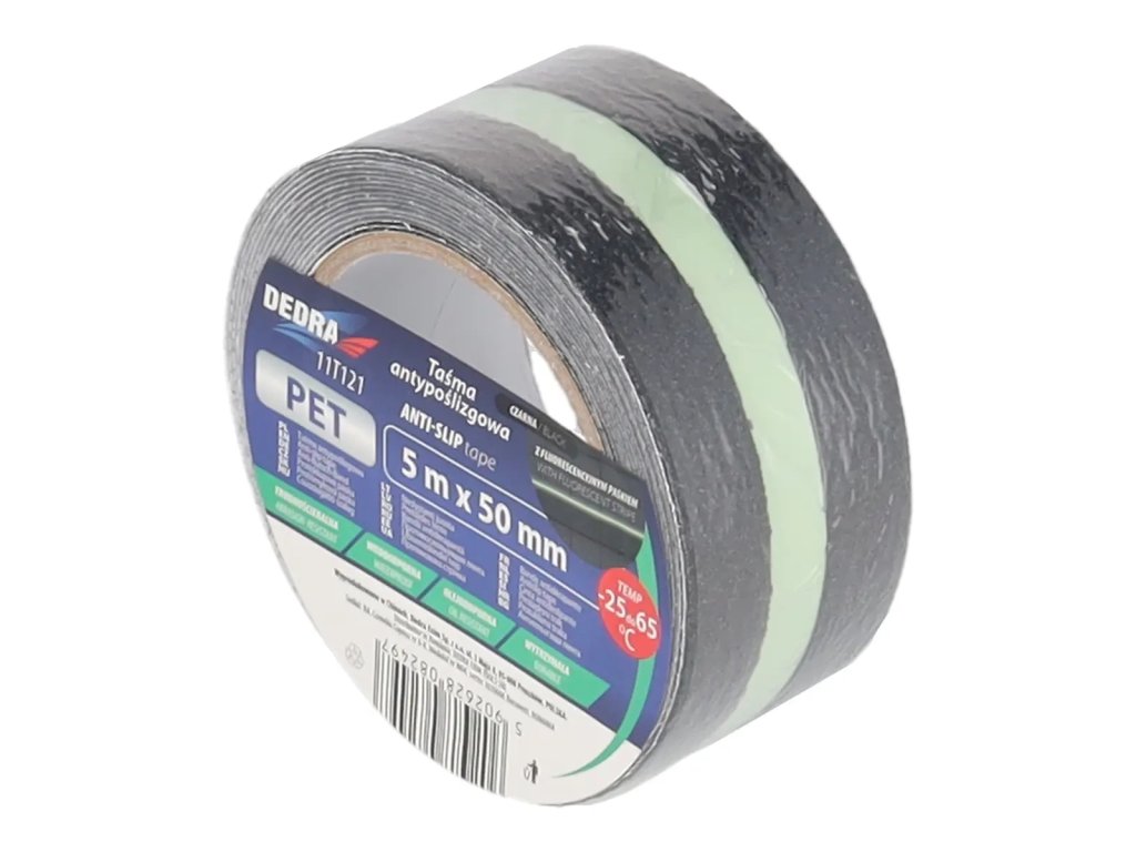 A DEDRA 11T121 csúszásgátló szalag egy strapabíró és praktikus termék, amely ideális a csúszós felületek biztonságának garantálására.
