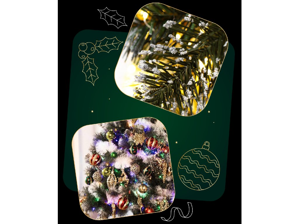 - Tűlevél színe: zöld + az ágak végei kétféle dérrel - fehér és ezüstcsillámmal.