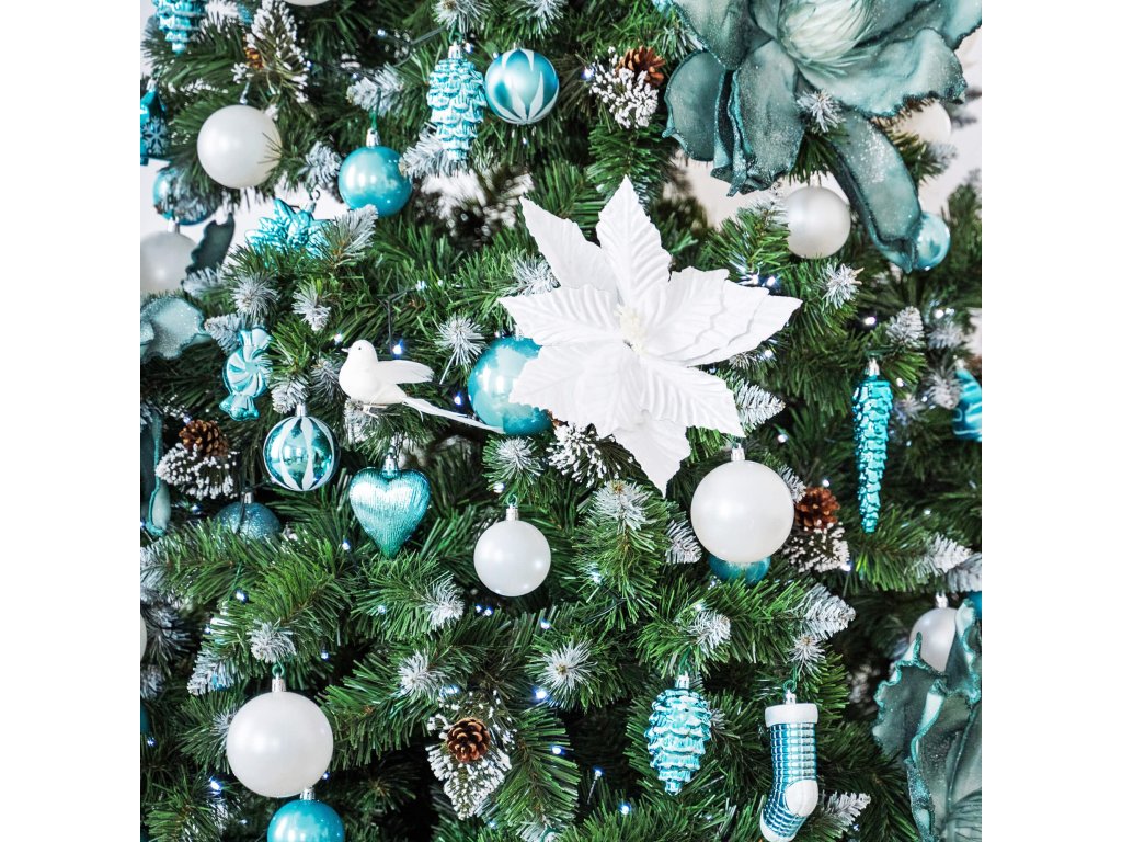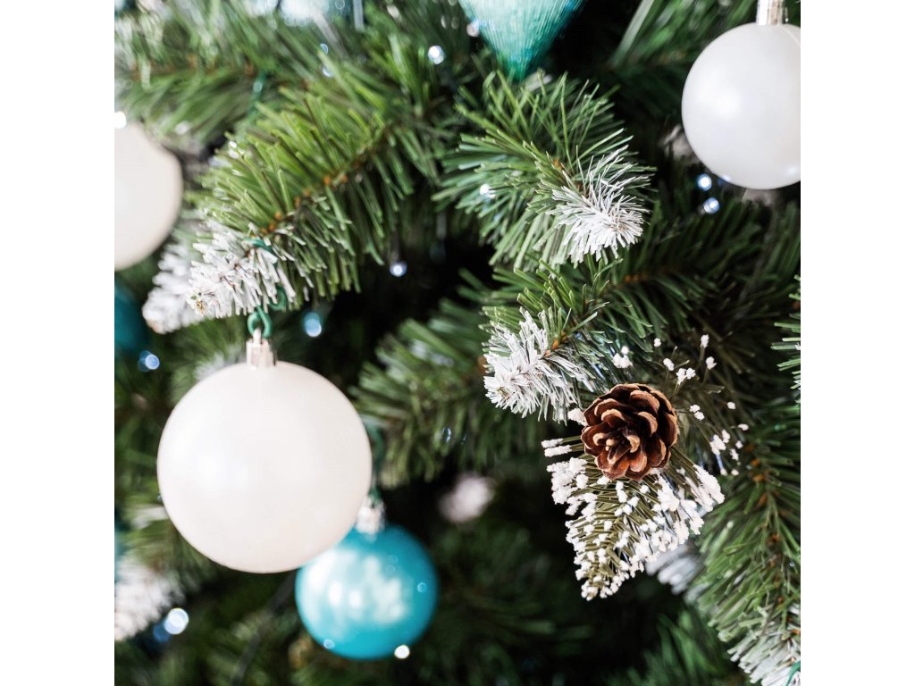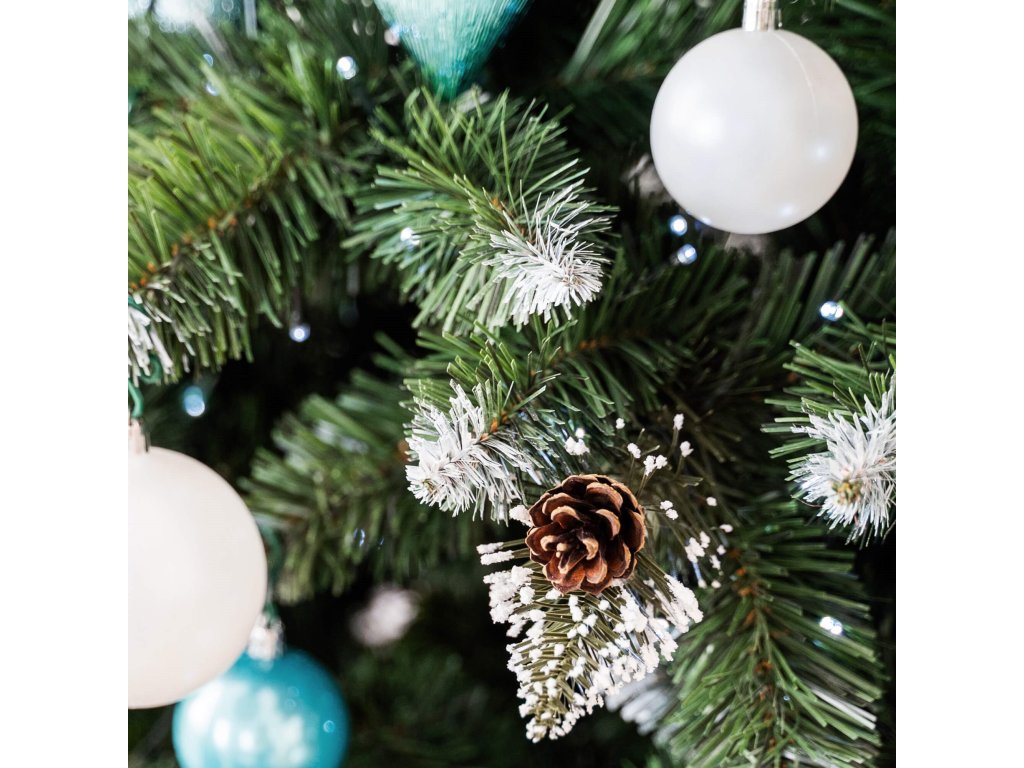 - Tűlevél színe: zöld + a kétféle havazással ellátott ágak végei - fehér, csillogó fehér + tobozok