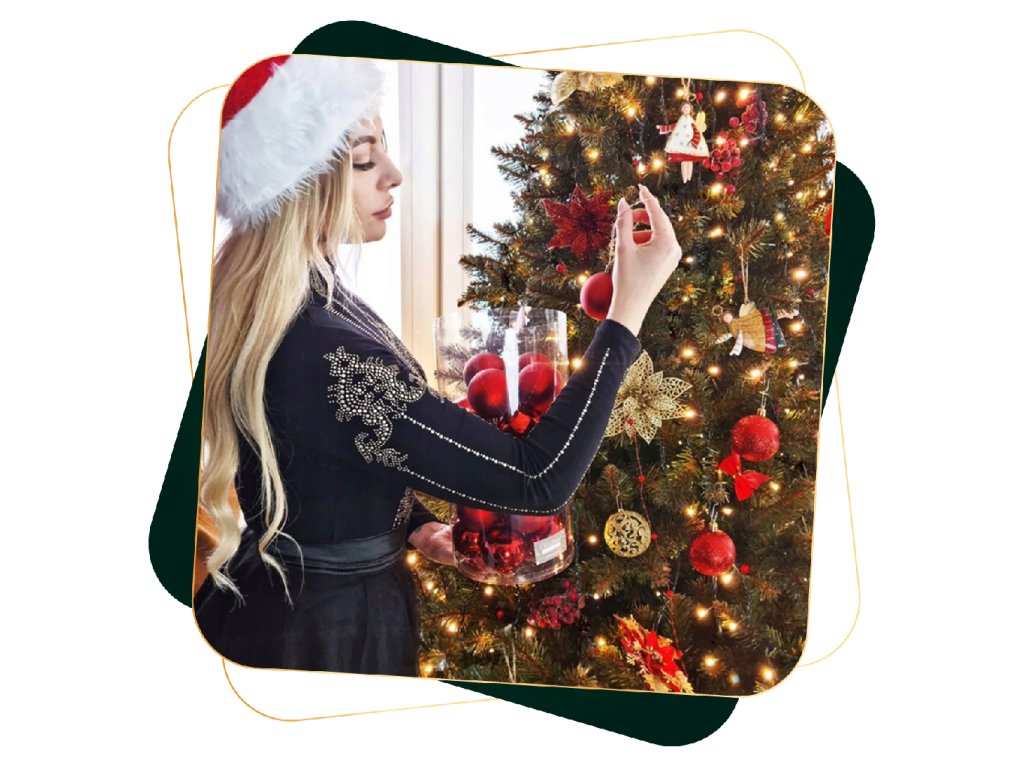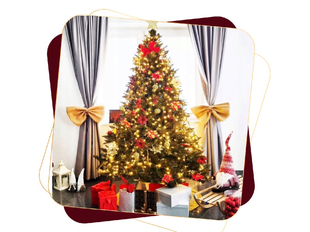 A karácsonyfa világítás és a dekorációk nélkül kerül forgalomba, amelyek a berendezési képeken láthatók.