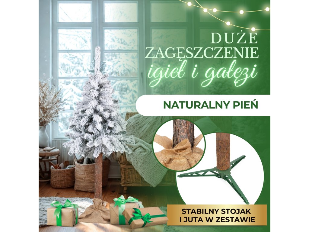 - Csomag méretei: 100 x 20 x 20 cmÖnálló összeszerelést igényelA zöld fólia valósághűen utánozza az igazi ágakatA fa tartós havas bevonattal van ellátva, amely szoros tapadást biztosít az ágakhoz, és hosszú távon megőrzi elegáns, téli megjelenését.Ultra realisztikus megjelenésFontos: A megfelelő hatás érdekében a ágakat gondosan kell kinyitni és formázni.Juta a talp elrejtésére a csomagbanÖsszeállítási útmutató a csomagban
