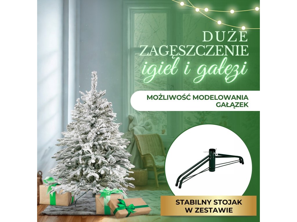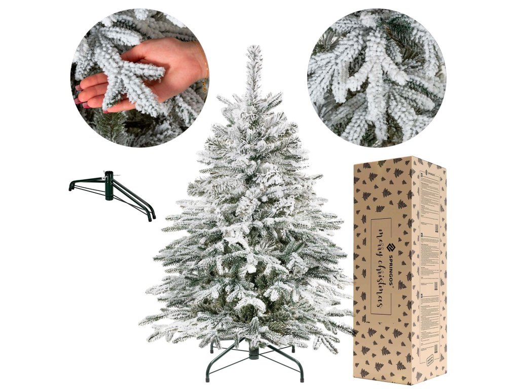 - Kiváló minőségű műhóval borított karácsonyfa - a hó nem hullik le, havas bevonat a karácsonyfa állványán is