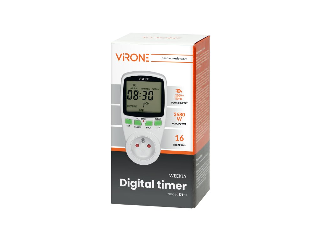 - Egyszerű kezelés: Intuitív gombok funkcióleírással a gyors időbeállításhoz.