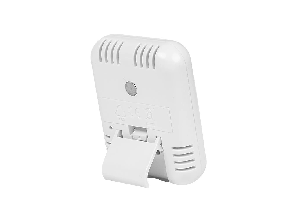- Egyszerű használat: Az ergonomikus kialakítás biztosítja a könnyű kezelhetőséget és elhelyezhetőséget bárhol a belső térben. A közepes méretű és áttekinthető LCD kijelző segítségével könnyen leolvashatja a jelenlegi hőmérséklet- és páratartalom-értékeket.