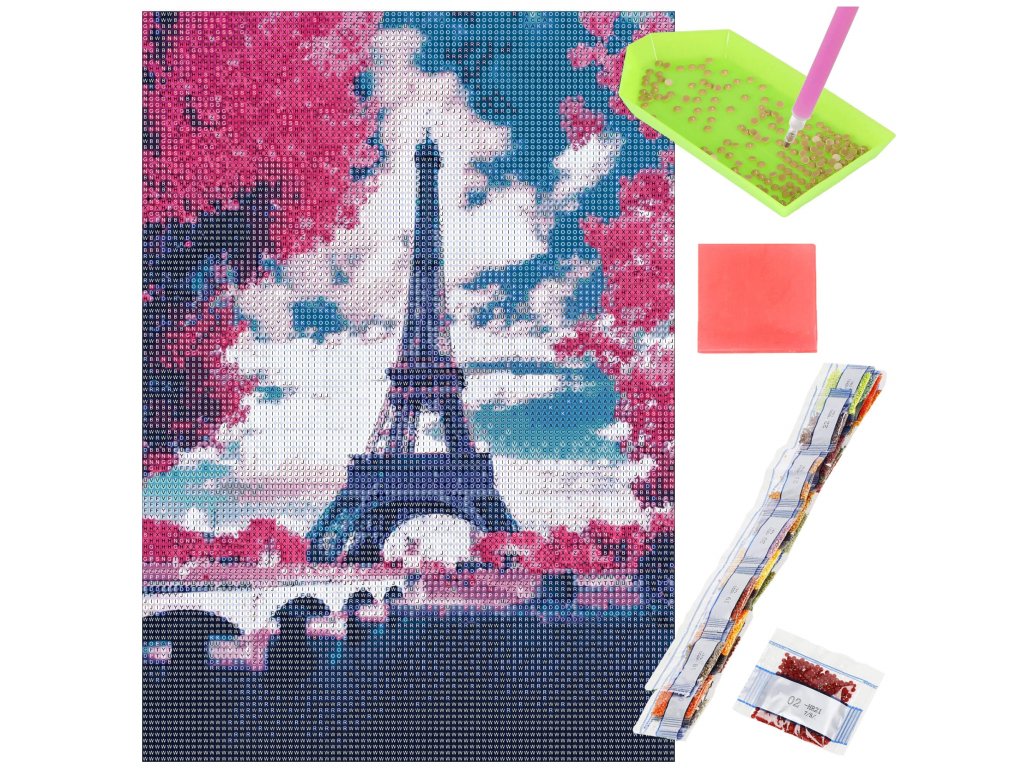 - 1x erős vászon nyomtatott képpel, amely Eiffel-tornyokat ábrázol, és betűket rendel színekhez, illetve számokat a gyémánt színéhez