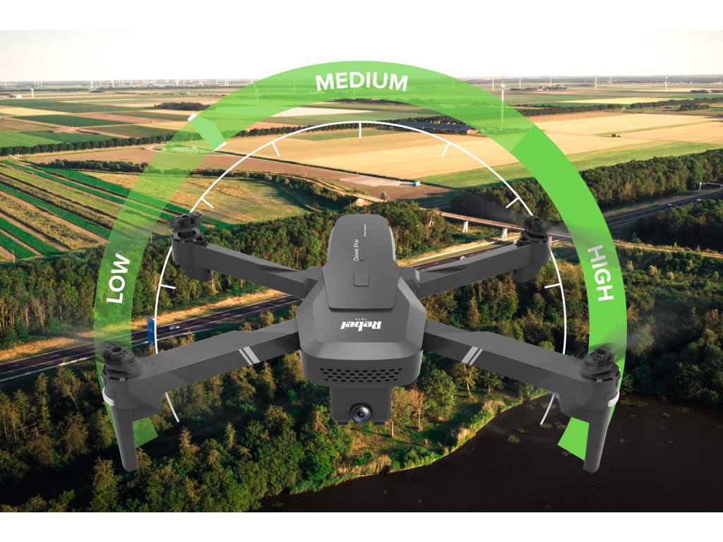 A DOVE PRO drón sebességvezérlési móddal van felszerelve. Képességeidtől és igényeidtől függően kiválaszthatod a három repülési sebesség közül azt, amelyik a legjobb lesz számodra az adott helyzetben.