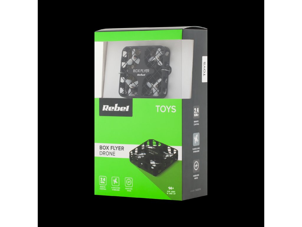 A Rebel Box Flyer drón nagy előnye, hogy három sebességmód közül választhat. Ez garantálja a nagyszerű szórakozást mindenki számára - akár van már tapasztalata ezzel a dróntípussal, akár csak most kezdi. Azok, akik nem elégszenek meg a "csak repüléssel", értékelni fogják a légi akrobatika, például a szaltók végrehajtásának képességét. Ezen kívül a készülék iránytű funkcióval és egy homing funkcióval is fel van szerelve, amellyel a drónt vissza lehet téríteni a kiindulási pontra.6 tengelyes giroszkópos stabilizátor Légi műrepülés 3 sebességmód Iránytű funkció (fej nélkül) Felszállási dobási lehetőség Automatikus trimm funkció Irányítási funkció Könnyű repülési idő: