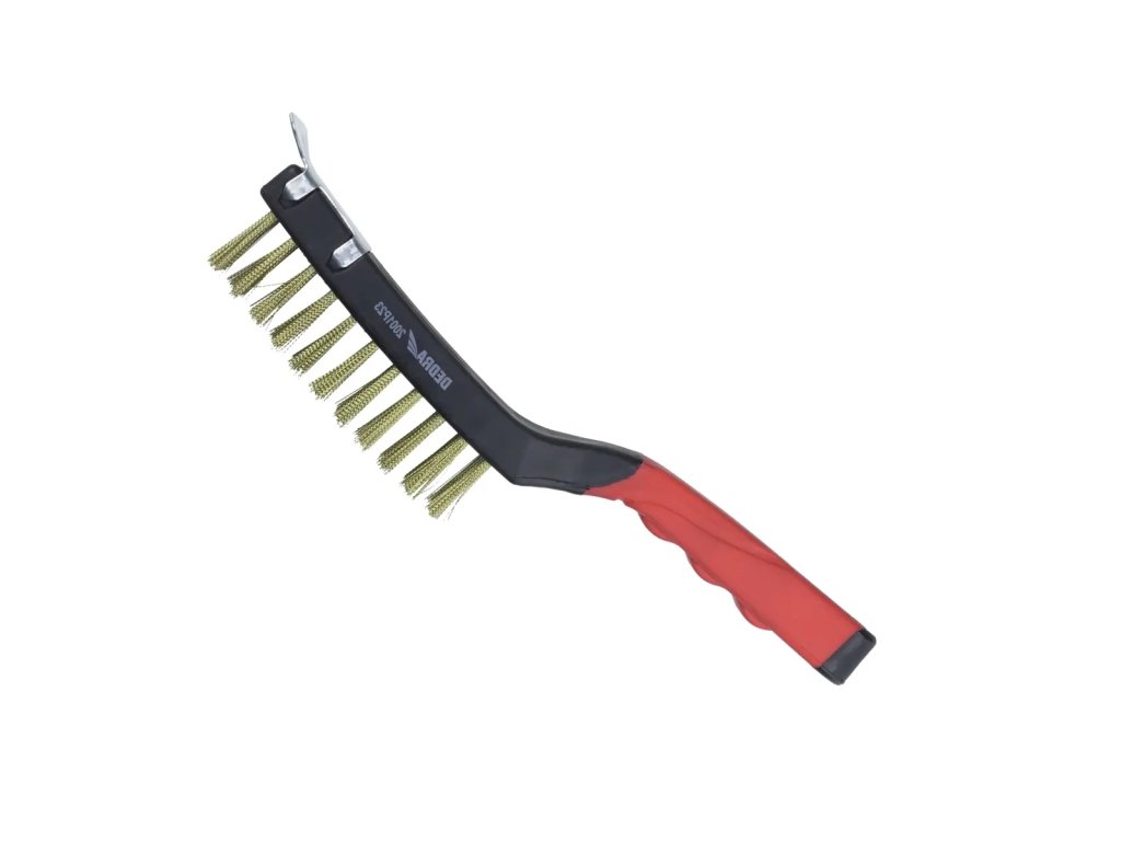 Drótkefe kaparóval, 4 soros, DEDRA 2001P23 sárgaréz, 285mm, kétkomponensű fogantyú