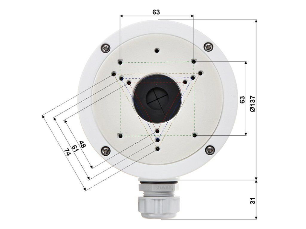 Az adapter alumíniumból készült, amelyet porfestési technológiával kezeltek. A tartó típusának további előnye a kábelvég tömítése, amely lehetővé teszi a vezetékek gyors elérését, miközben megőrzi az egész szerkezet tömítettségét.