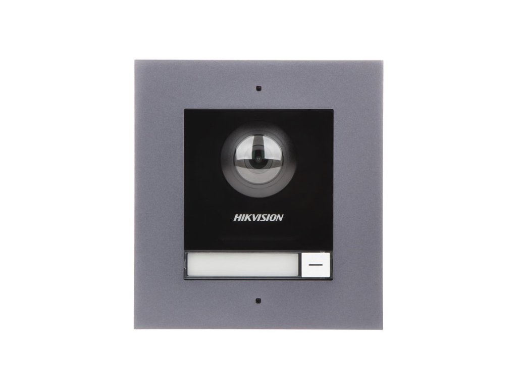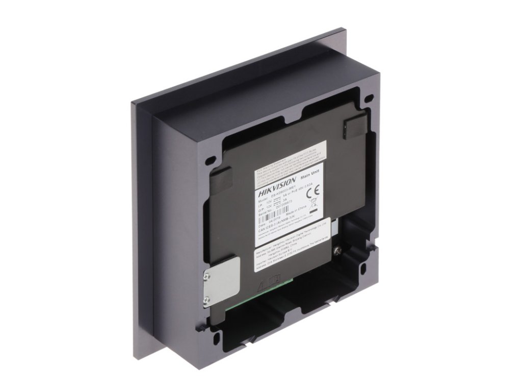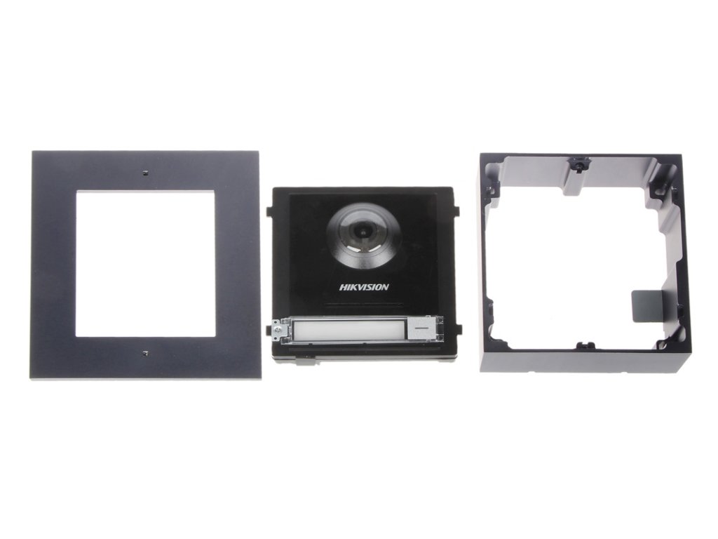 DS-KD-8003-IME1/Flush a kaputelefon panel fő egysége, amely a Hikvision márka moduláris IP videókaputelefon rendszerének része. Az eszköz egy "hal szeme" típusú kamerából áll, amelynek felbontása 2Mpx (FullHD), kétirányú hangkommunikációs rendszer és hívógomb. A modulnak két relé kimenete van a zárak vezérlésére, valamint négy további riasztó kimenet, amelyek lehetővé teszik a belépési gombok és elektromágneses zárak csatlakoztatását. Az egység a süllyesztett telepítéshez való keretben található (jelölés -Flush). A fő egység lehetővé teszi a kaputelefon állomás kibővítését további