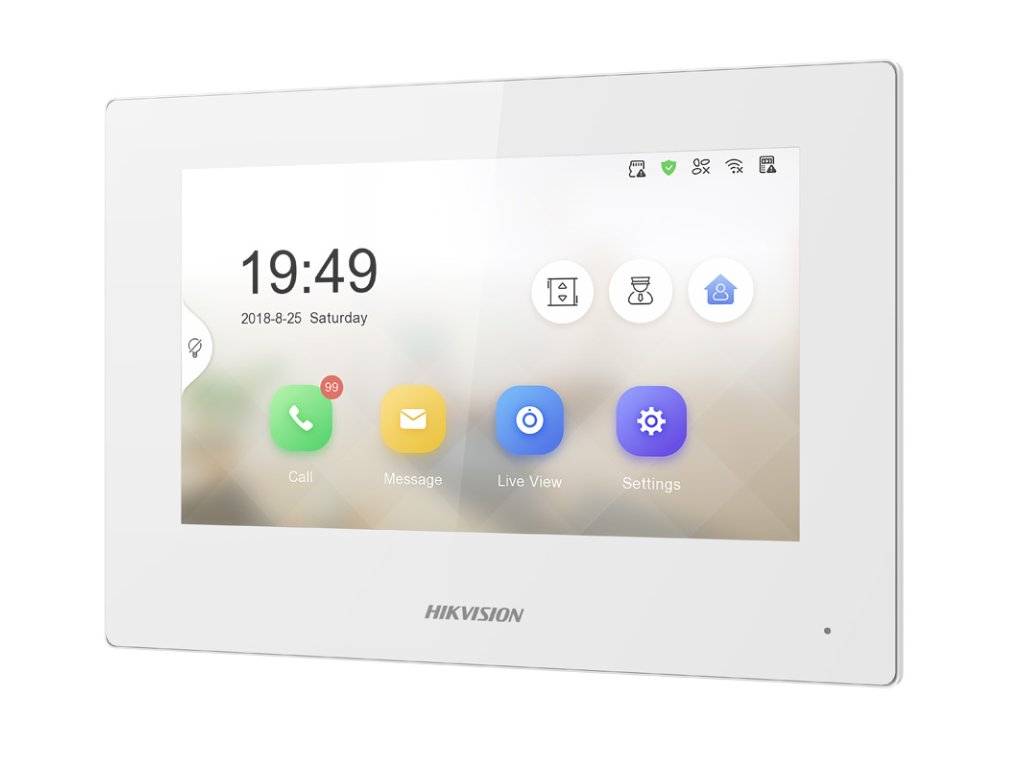 egy belső egység az IP videókapuhoz, amely a Hikvision interkom rendszerek második generációjába tartozik. A 7 hüvelykes érintőpanel TFT LCD 1024x600 pixel felbontásával a kép nagyon jól látható és részletes. Ez a megoldás lehetővé teszi az ajtó előtt álló személyek pontos azonosítását. A DS-KH6320-WTE1-W monitorban használt érintőképernyő rendkívül kényelmessé teszi az eszköz kezelését.