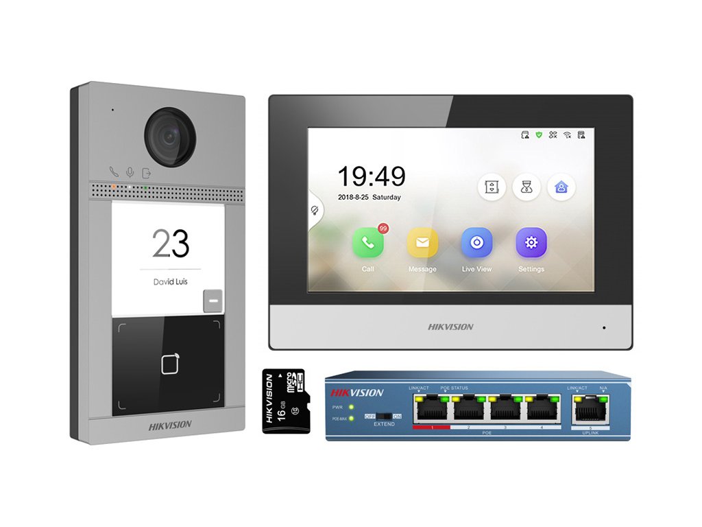 A DS-KIS604-S videó kaputelefon szett a Hikvision márkától a magas minőségi igényekkel rendelkező felhasználóknak készült, amelyek belépés ellenőrzésére szolgáló eszközt keresnek. Az IP videó kaputelefon szettek rendkívül széles funkcionalitással és modern megjelenéssel rendelkeznek. A csomag tartalmazza: