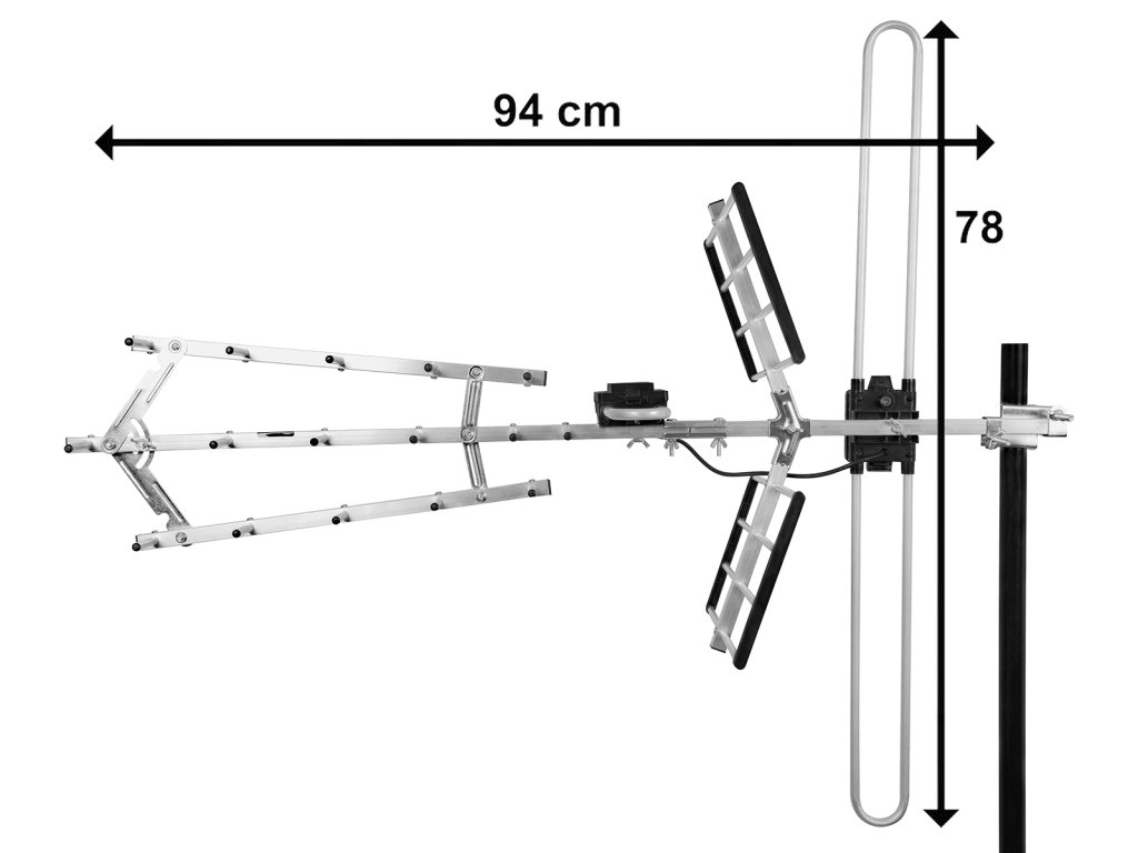 Irányított DVB-T antenna 14-18 dB nyereséggel, FullHD és 4K UltraHD felbontás támogatásával, kültéri telepítésre tervezve. Lehetővé teszi a VHF+UHF sávú jelek, DVB-T / DVB-T2 digitális földfelszíni TV jelek, MUX1, MUX2, MUX3, MUX4, MUX8 csatornák vételét. Azantenna beépített LTE szűrővel rendelkezik .