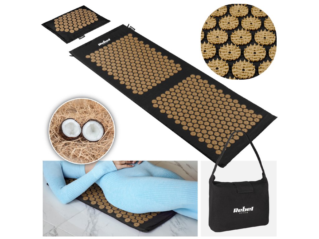 ECO egészségügyi matrac tüskékkel akupresszúrához párnával, 130x50cm, XXL, arany tüskék, Rebel Active