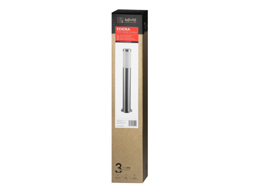 Az EDERA kerti lámpatest, amely az outdoor lámpasorozathoz tartozik, két fali lámpát és a bemutatott oszloplámpát tartalmaz, lehetőséget biztosít egy egységes kerti világítás létrehozására. A sorozat tervezésekor az esztétikát, a tartósságot és a funkcionalitást vették figyelembe. Ennek köszönhetően tökéletesen működik mind dekoratív, mind funkcionális elemként.Az EDERA rozsdamentes acélból készült, ami hosszú élettartamot biztosít. Az IP44 védelem megóvja a lámpatestet a portól és a víztől, így a lámpák kültéren is telepíthetőek zord időjárási körülmények között. Emellett a magas ütésállósági fokozat, az IK08 megvédi a lámpát a külső hatásoktól.
