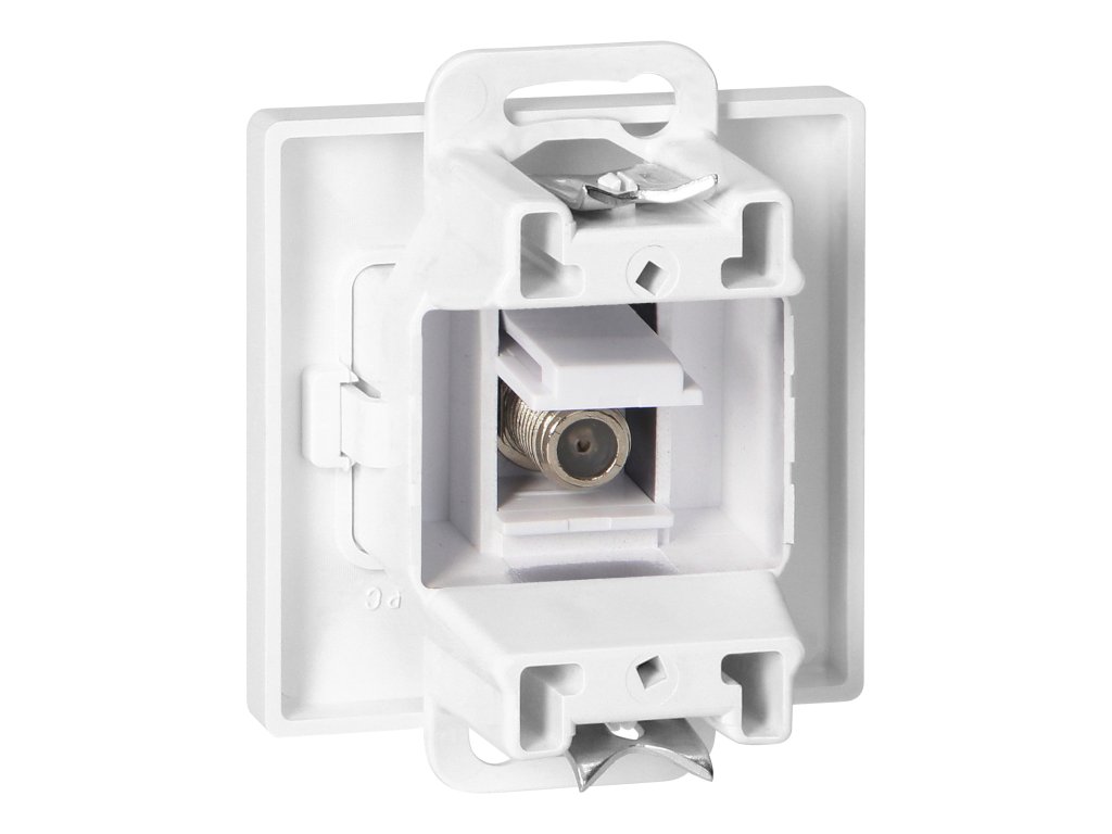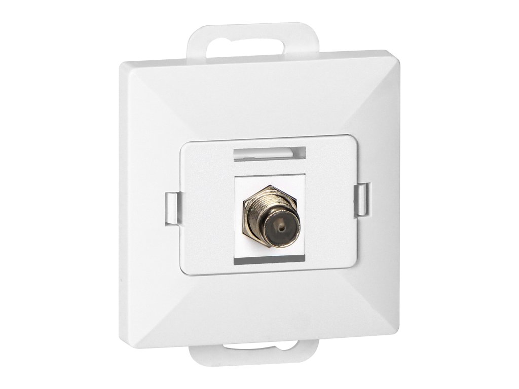 Moduláris sorozat a szimmetrikus keretlap-rendszerrel (1, 2, 3, 4, 5 modulokhoz), lehetővé téve a termék vízszintes és függőleges pozícióban történő felszerelését. A modern, gyorscsatlakozó mechanizmus (a vezetékeket közvetlenül a házba nyomva csatlakoztatják) biztosítja a vezetékek biztonságos és biztonságos telepítését és eltávolítását. A konnektorok hagyományos csavaros csatlakozásokkal vannak felszerelve. A kapcsok belső kialakítása garantálja a 0,75 mm? és 2,5 mm? közötti vezetékek biztonságos csatlakoztatását. Az erős és masszív rögzítőlemez-rács és a kiváló minőségű, önvisszahúzó elemek lehetővé teszik a stabil és biztonságos telepítést a dobozban. Különleges rugós elemek megkönnyítik a keret testbe való beillesztését.Egyes antennával rendelkező TV aljzat, F-típus. Egy kábel csatlakoztatását teszi lehetővé F-típusú csatlakozóval. Beltéri használatra készült (IP20).