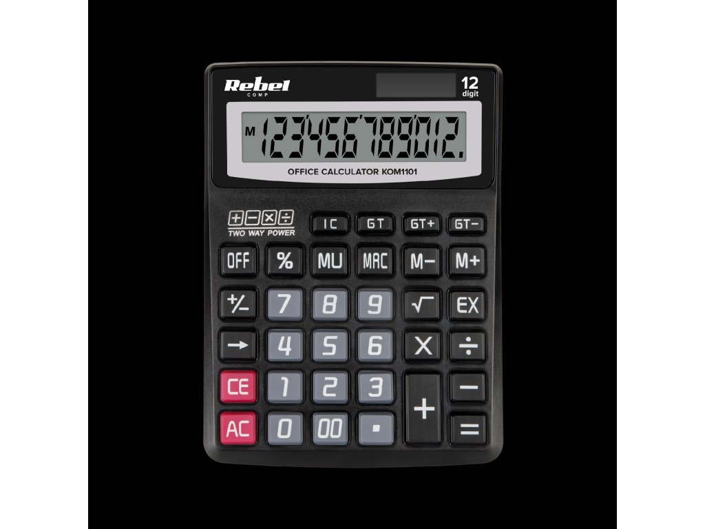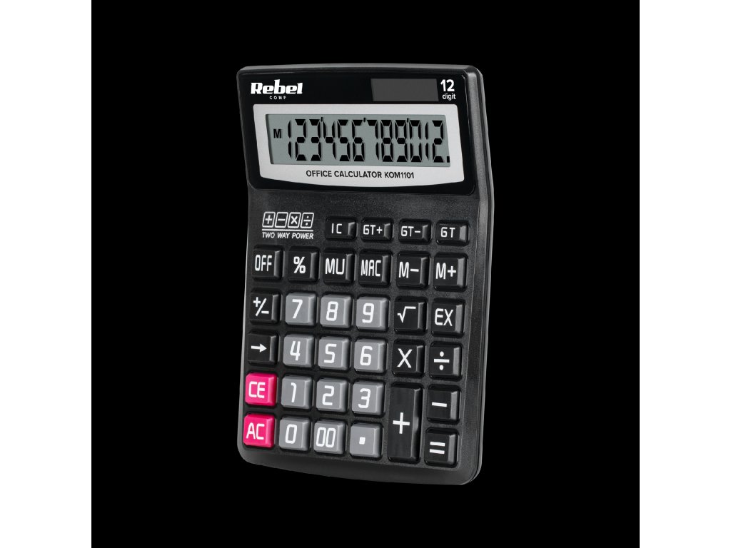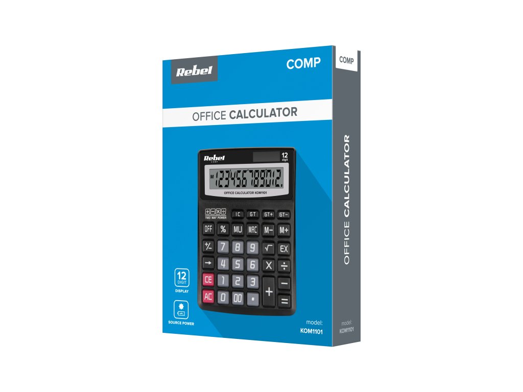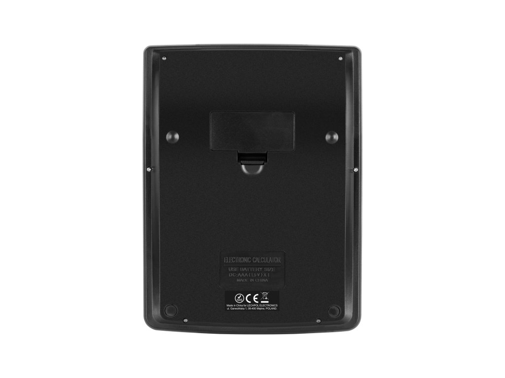 Kijelző: 12 számjegy Egyszámjegyű törlési funkció Negatív szám művelet Összegösszeg funkció Memória funkció Tápellátás: napelem / AAA elem Méretek: 138 x 190 x 35 mm Súly: 193 g