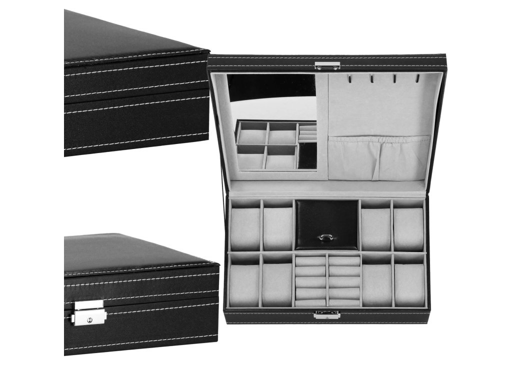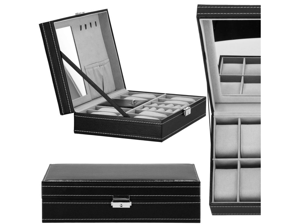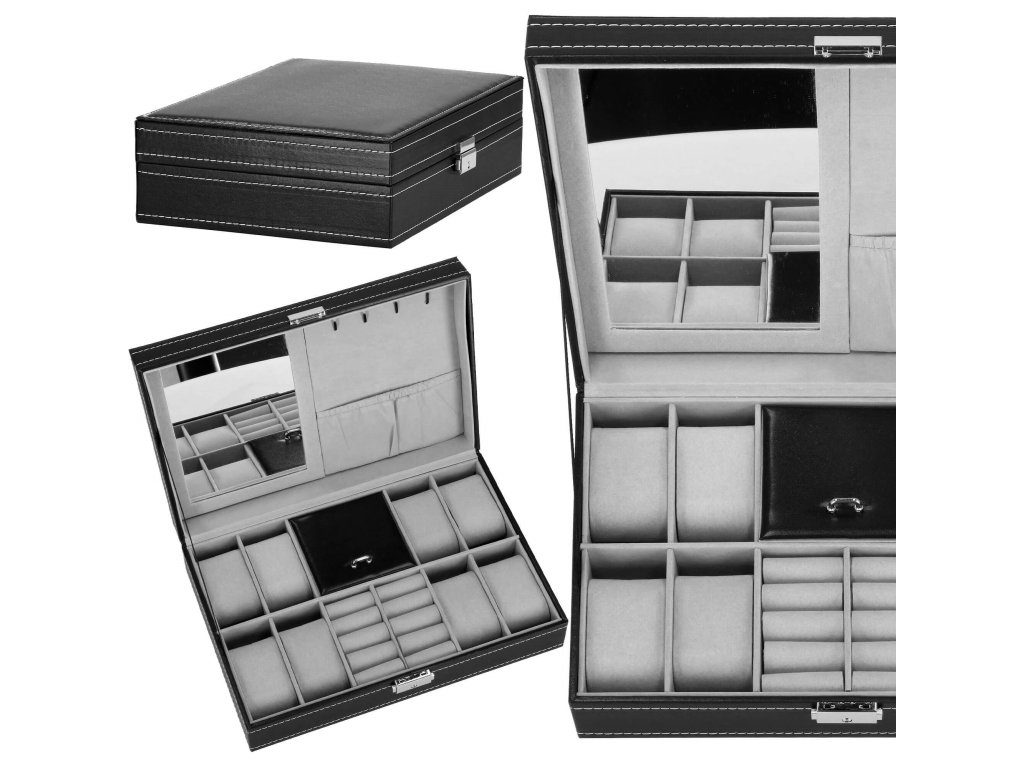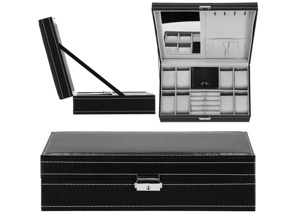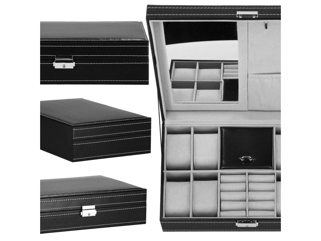 - 2 rekesz gyűrűk, mandzsettagombok és fülbevalók számára