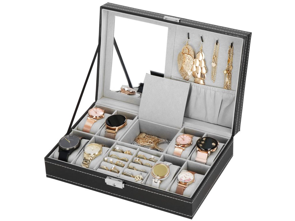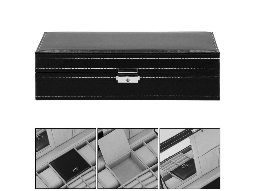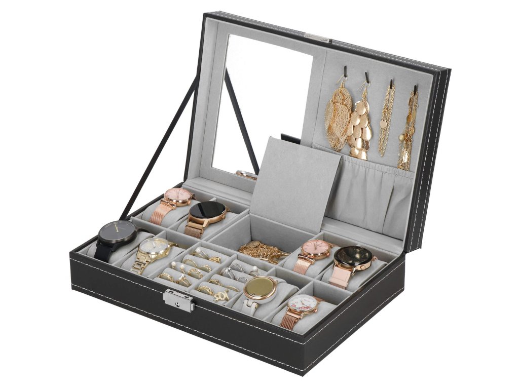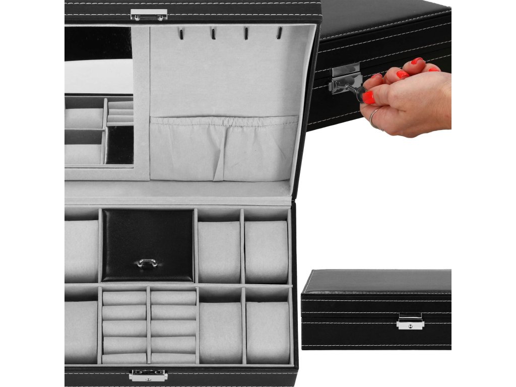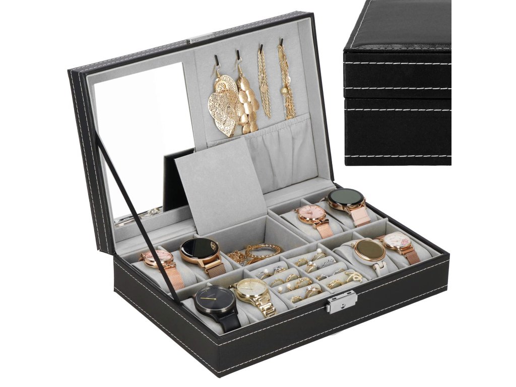 - 2 rekesz gyűrűk, mandzsettagombok és fülbevalók számára