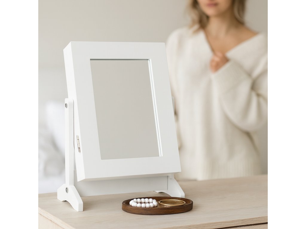 Ékszertartó tükörrel fehér