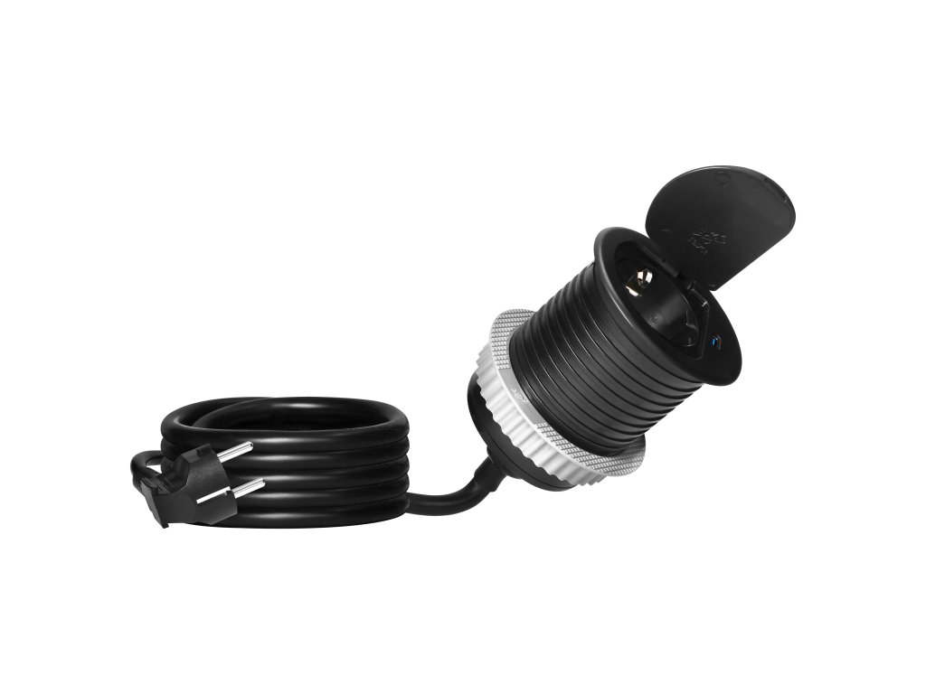 Elektromos aljzat USB töltővel, fekete, 1,9m
