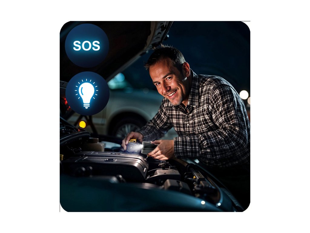 - Hordozható, vezeték nélküli és könnyen használható – ideális mindennapi használatra, utazáshoz és garázsba. Ráadásul a beépített lámpa sötétedés után is vészhelyzeti használatot biztosít.