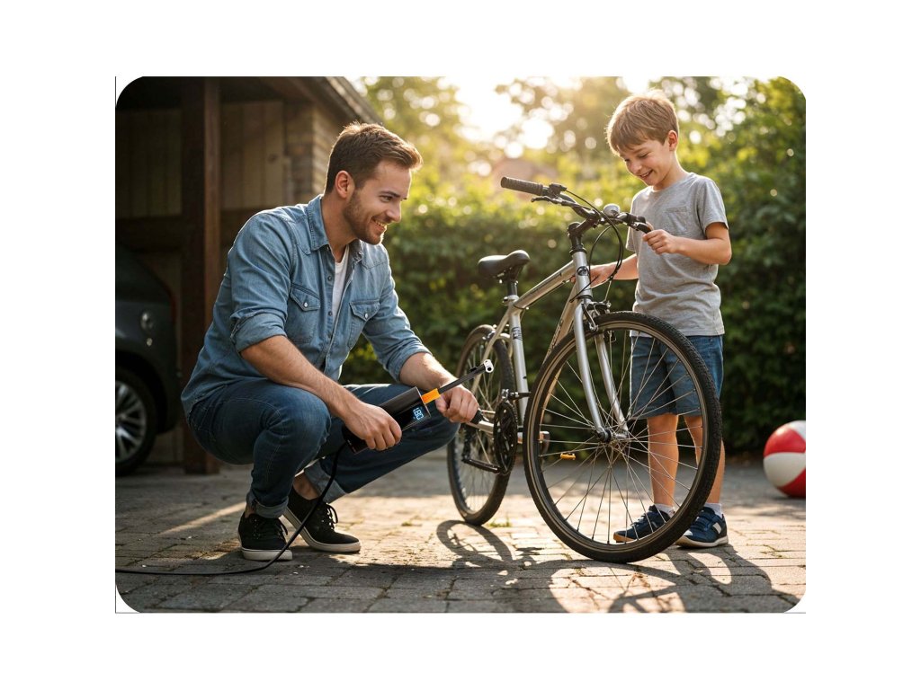 - A mini kompresszor nagy teljesítmény egy kompakt házban. Könnyedén felfújja az autó, motorkerékpár és kerékpár gumikat, és a beépített nyomásérzékelőnek köszönhetően automatikusan kikapcsol, amikor eléri a beállított értéket.