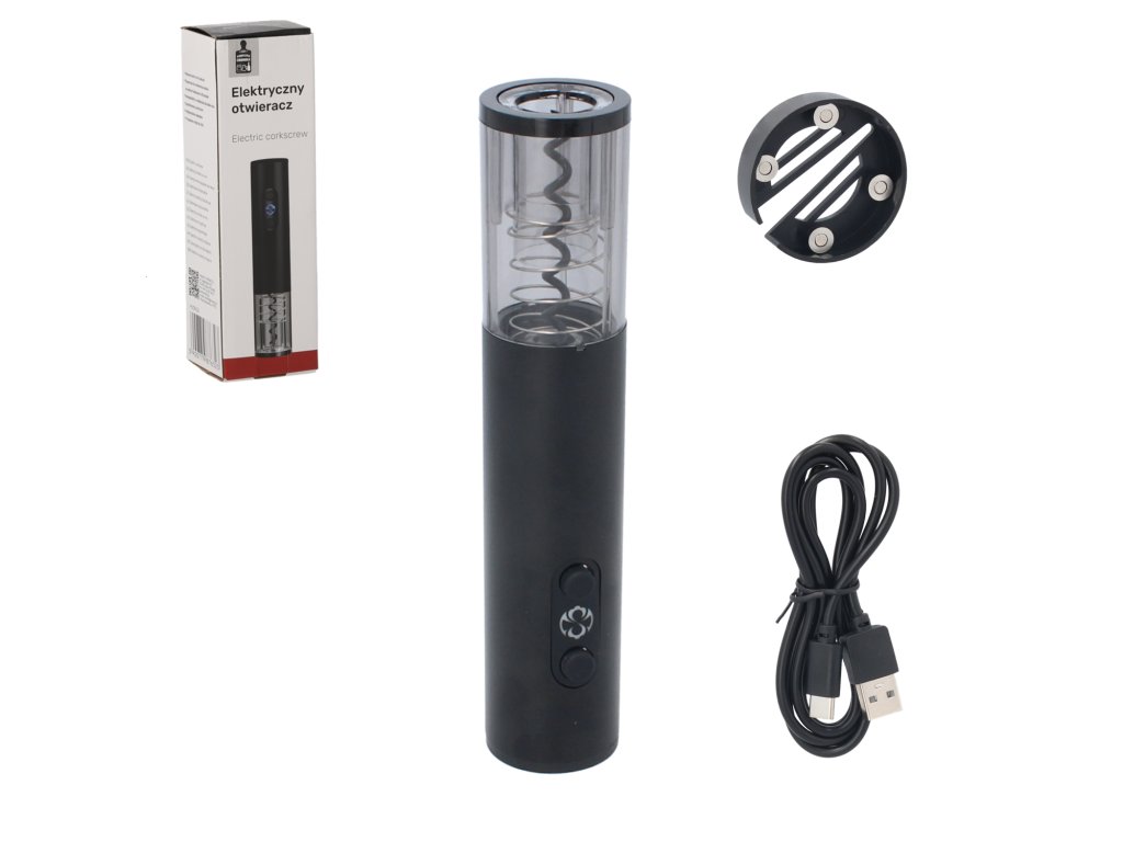 Elektromos bornyitó, fóliaszeletelővel együtt.Körülbelül 6-8 másodperc alatt eltávolítja a dugót.