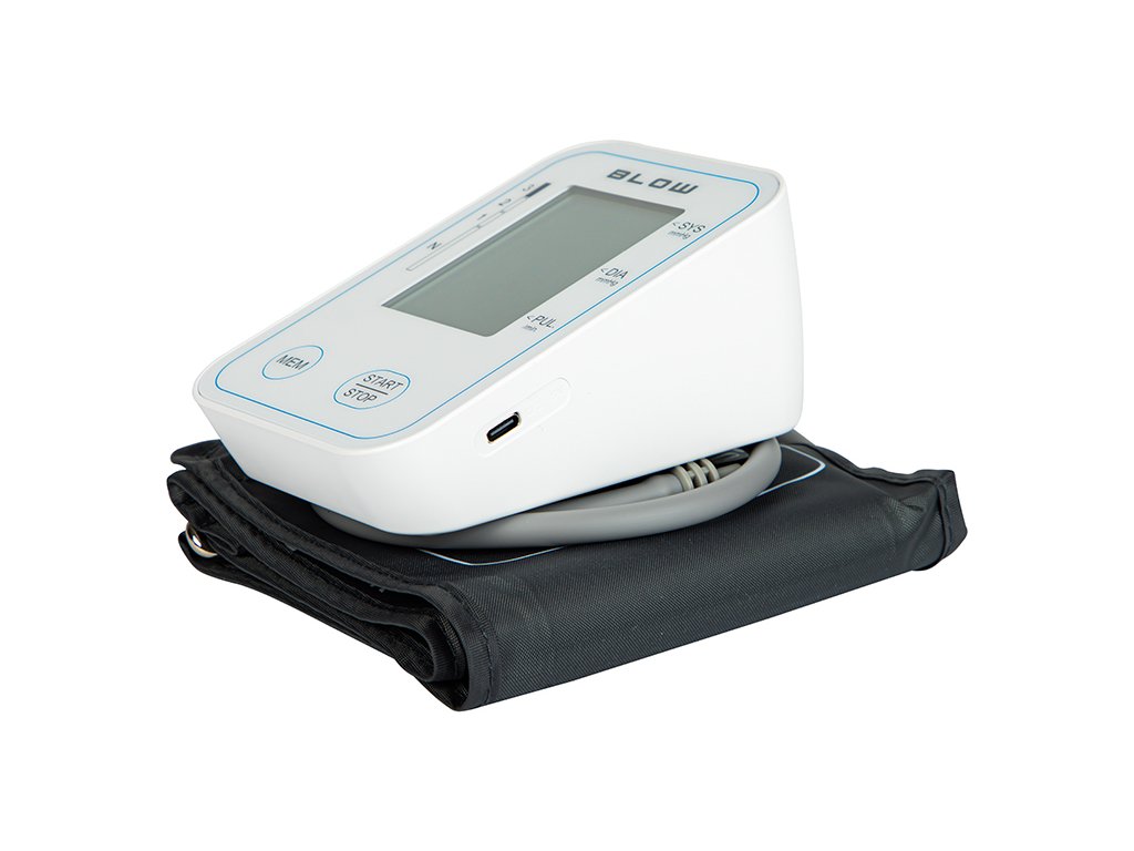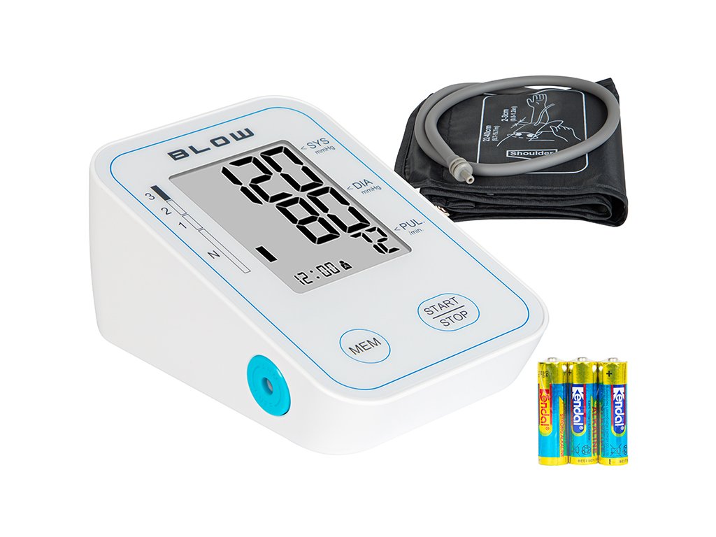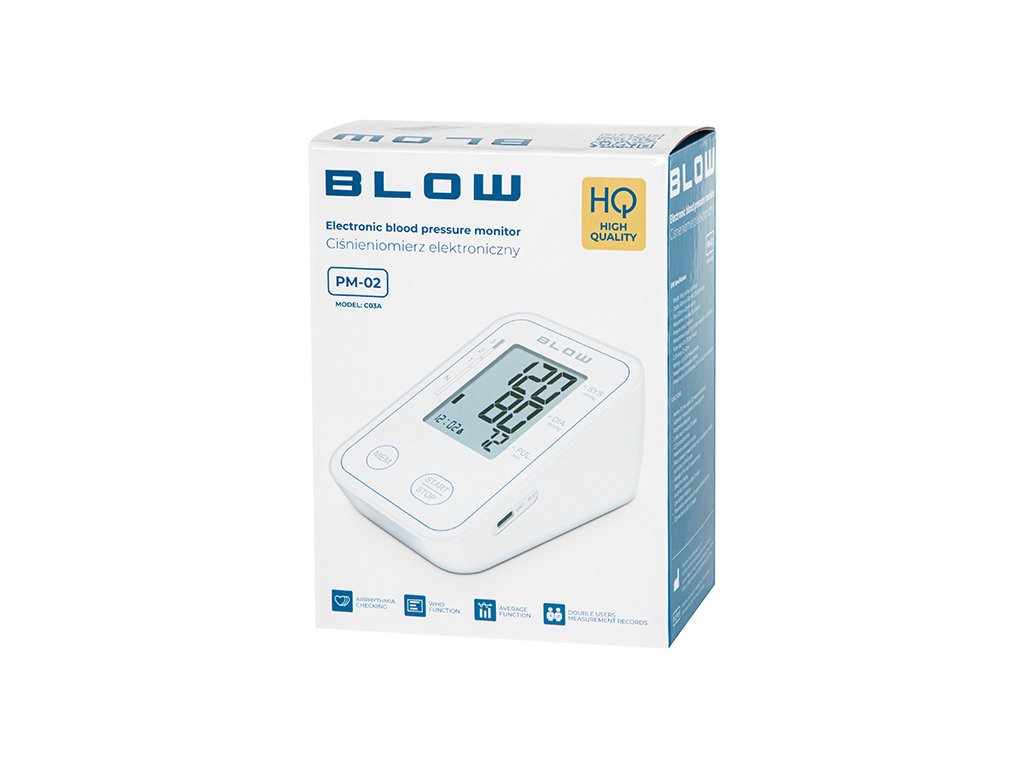 A Blow PM-02 vérnyomásmérő egy teljesen automatikus orvostechnikai eszköz, amely pontos vérnyomás- és pulzusmérést biztosít. Észleli az aritmiát és ellenőrzi a mandzsetta helyes elhelyezését, ami növeli az eredmények pontosságát. A nagy LCD kijelző megkönnyíti a leolvasást, és a két felhasználó számára (2x120 mérés) rendelkezésre álló memória lehetővé teszi az eredmények nyomon követését. Az eszköz kiszámítja az utolsó 3 mérés átlagát, és egy perc tétlenség után automatikusan kikapcsol. Elemmel (3x AA) vagy hálózati adapterrel (5V, 1A) is működik, így a vérnyomásmérő otthon és utazás közben is kényelmesen használható.