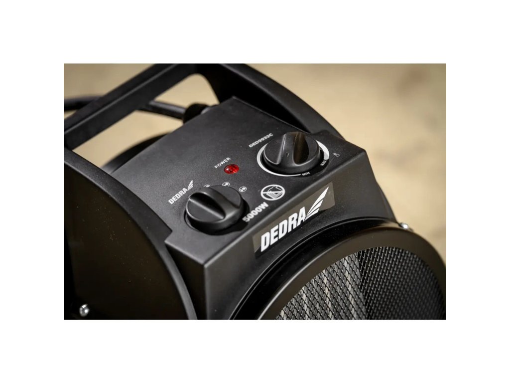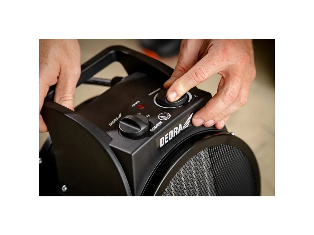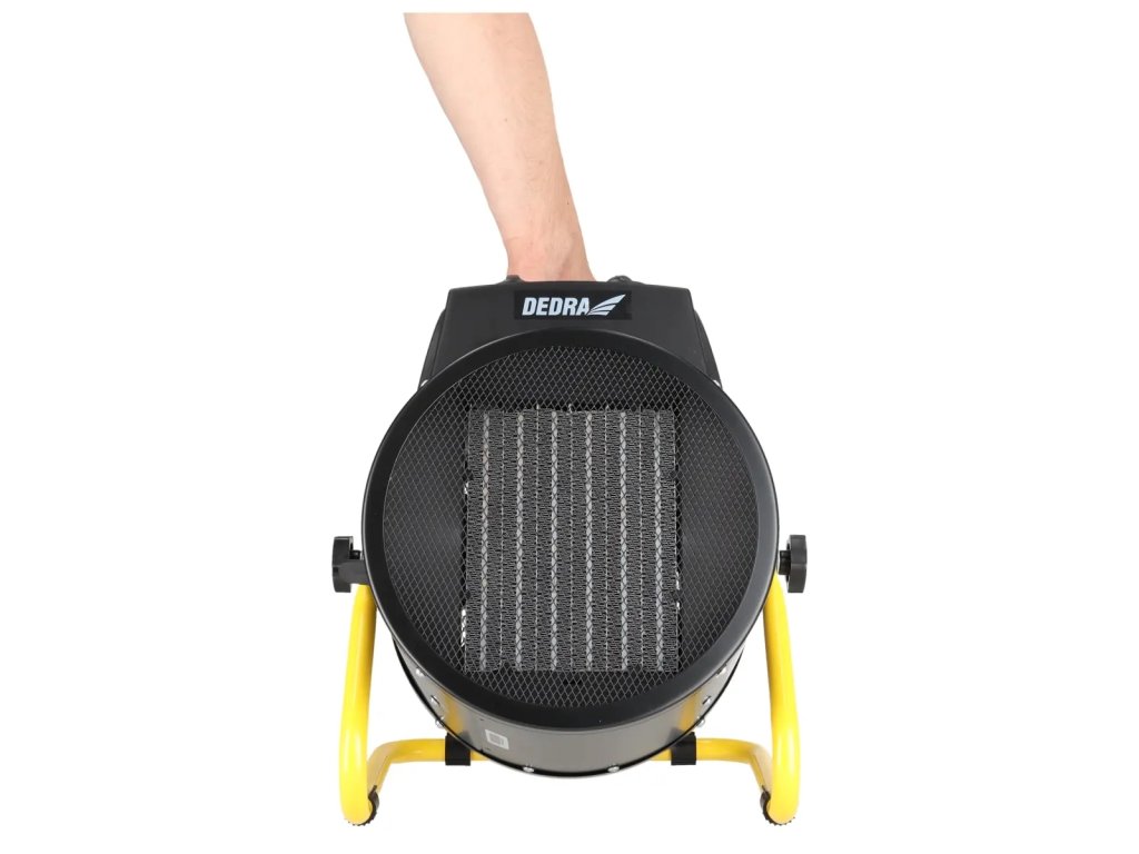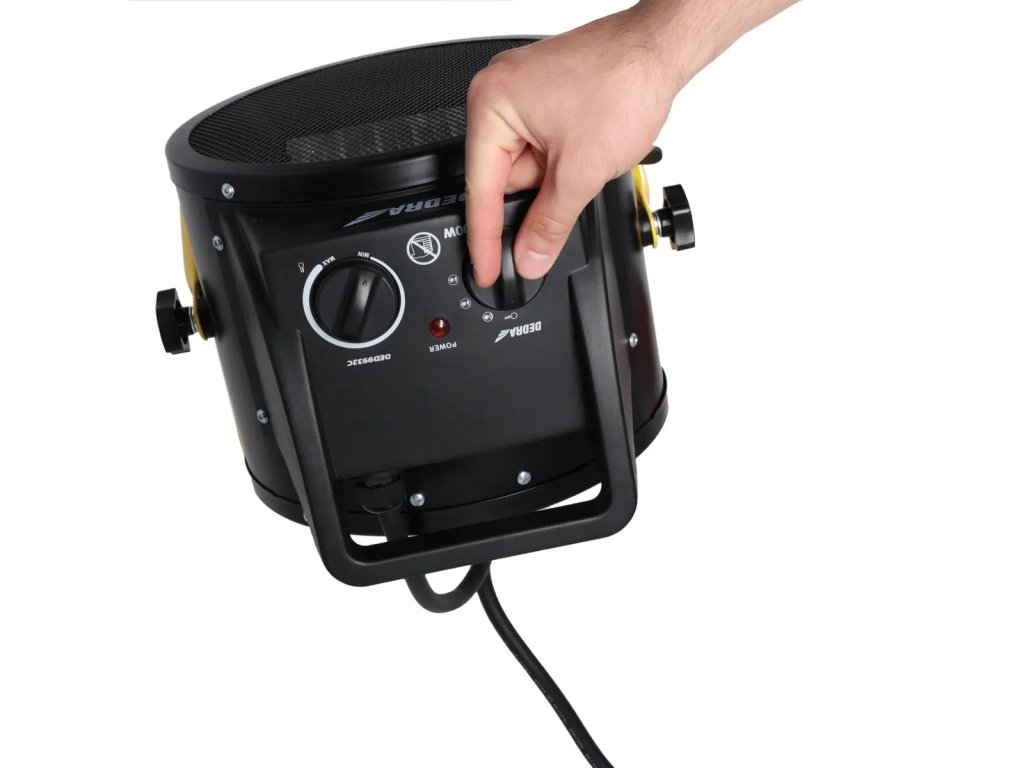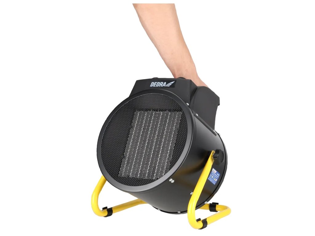 Az elektromos fűtő DED9931C beltéri használatra készült készülék. Használható helyiségek és hasznos terek, például pincék, garázsok, műhelyek stb. fűtésére. A készülék kiegészítő hőforrásként szolgál, nem pedig fő hőforrásként. Ha a hőmérsékletgomb minimumra van állítva, a készülék nem használható ventilátorként fűtési funkció nélkül. A kerámia fűtőtestnek (PT C) köszönhetően a hő szinte azonnal érezhető bekapcsoláskor. Fém burkolat. Kényelmes fogantyú a szállításhoz.Ez a termék csak alkalmi használatra vagy jól szigetelt helyiségekben való használatra alkalmas.