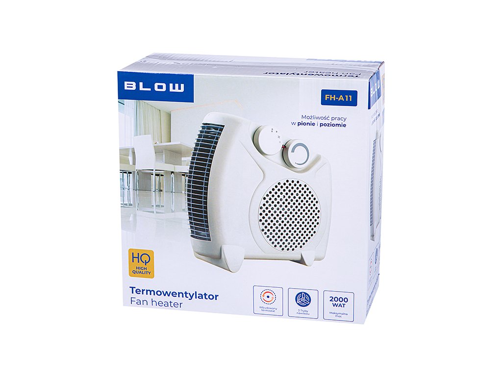 A BLOW ventilátor tökéletes megoldás otthona hatékony fűtéséhez. Gyorsan és hatékonyan fűti a fürdőszobát vagy a gyerekszobát a hideg napokon, kis méretének köszönhetően pedig praktikus a kempingben vagy a birtokon. Modern dizájnja nemcsak praktikus, hanem elegáns is, ami bármilyen belső teret feldob.