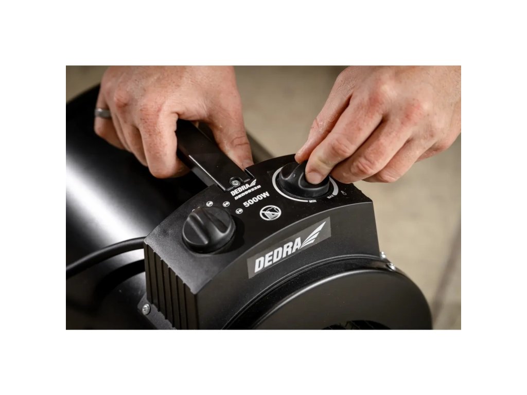 Az elektromos fűtőtest DED9932 B zárt helyiségekben való használatra készült eszköz. Otthoni és kereskedelmi helyiségek, mint például pincék, garázsok, műhelyek stb. fűtésére szolgál. Az eszköz kiegészítő hőforrásként használható, nem pedig fő hőforrásként. Folyamatos működésre tervezték, és üzemelés közben nem termel szennyeződést vagy szagot. Axiális ventilátorral és tartós alacsony hőmérsékletű fűtőelemekkel van felszerelve. A fűtőtest beépített hőmérsékletérzékelővel, teljesítményszabályozóval és termosztáttal rendelkezik. A fűtőtest kialakítása lehetővé teszi a forró levegő áramlási szögének beállítását is. Amikor a hőmérséklet-szabályozó minimálisra van állítva, az eszköz fűtési funkció nélküli ventilátorként is használható. A fűtőtest könnyen szállítható alacsony súlya, kis mérete és kényelmes fogantyúja miatt.Ez a termék csak alkalmi használatra vagy jól szigetelt helyiségekben való használatra alkalmas.