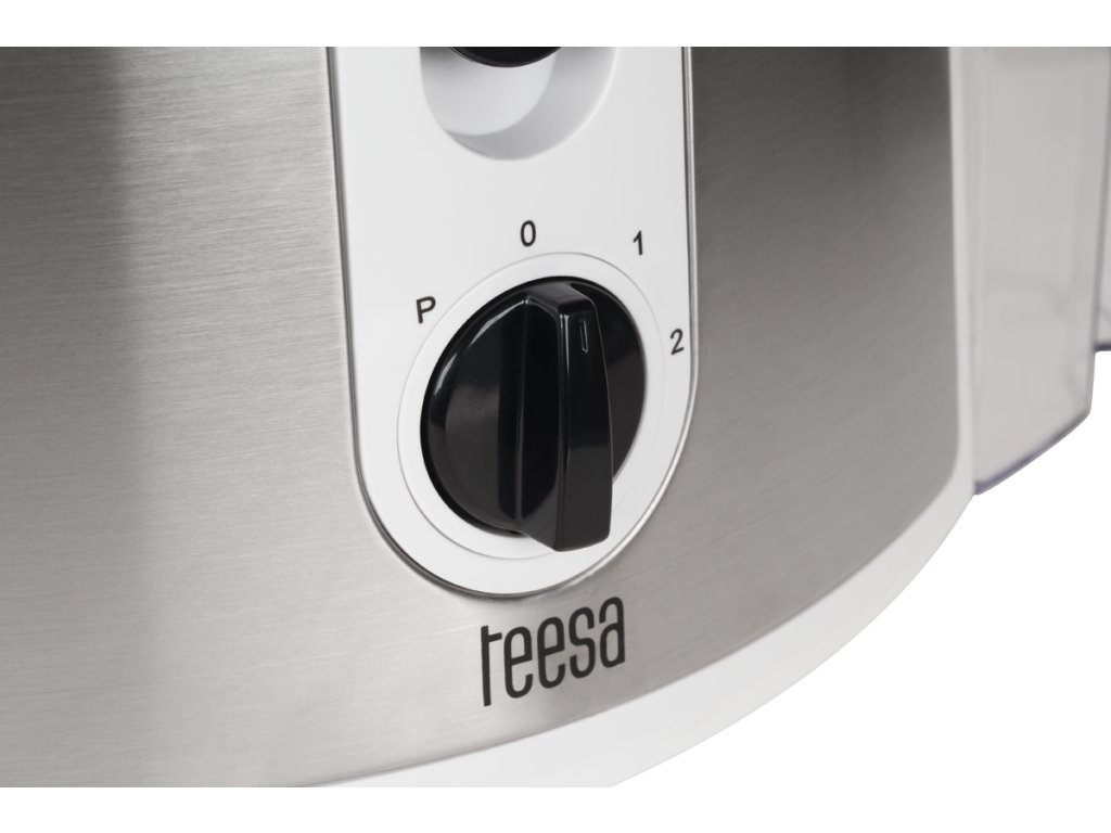 A Teesa TSA3015 egy rendkívül funkcionális és modern gyümölcscentrifuga, amelynek maximális teljesítménye 800 W. Két színben, fehérben vagy feketében kapható, így Ön kiválaszthatja a konyhája berendezéséhez tökéletesen illeszkedő modellt. A termék megkülönböztető jellemzője a széles nyílás, amely lehetővé teszi a gyümölcsök és zöldségek kipréselését anélkül, hogy előbb feldarabolná őket. Ez kényelmes és időtakarékos. A készülék két tartállyal rendelkezik: egy félliteres kancsó a gyümölcsléhez és egy külön 1,2 literes tartály a gyümölcspéphez. A termék további előnye, hogy a gyümölcsök és zöldségek típusától függően kiválasztható a sebességi mód. A Teesa gyümölcscentrifuga kialakítását úgy tervezték, hogy a készülék használat után könnyen szétszerelhető és tisztítható legyen. A felhasználó biztonsága érdekében a TSA3015 egy olyan reteszelővel van felszerelve, amely lehetővé teszi, hogy a készülék csak akkor induljon el, ha minden alkatrész megfelelően össze van szerelve.