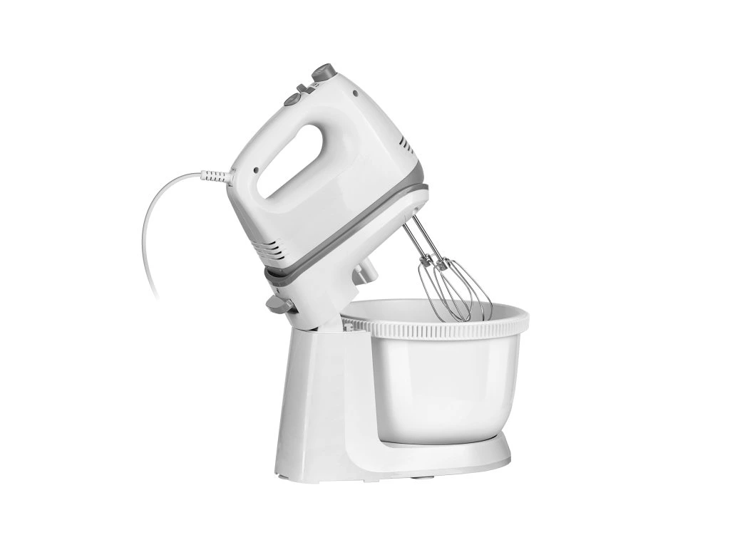 tál: 3,4 l Teljesítmény: 400 W Tápellátás: 220 - 240 V~; 50 - 60 Hz Súly: 2,2 kg Méretek: 287 x 213 x 350 mm Kábel hossza: 100 cm Tartalmazza: tál, talp, habverők, keverők, használati utasítás