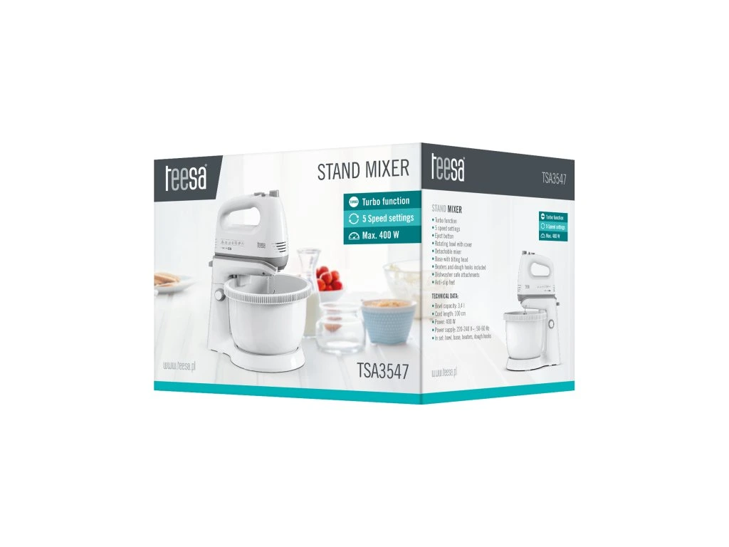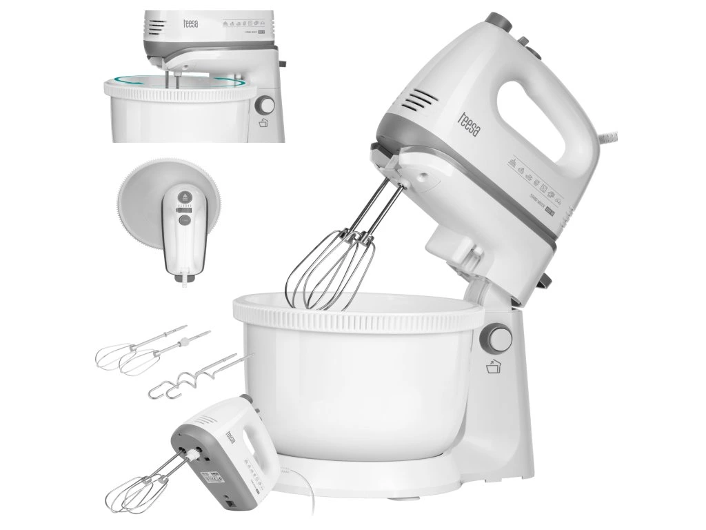 A Teesa mixer 400 W-os teljesítményével még a legnehezebb tészták, például a pitetészta elkészítésében is segít. A sebességet azonban az 5 sebességfokozatú szabályozógomb és a Turbo funkció segítségével az Ön igényeihez igazíthatja, amely azonnal a maximumra gyorsítja a tészta elkészítését.