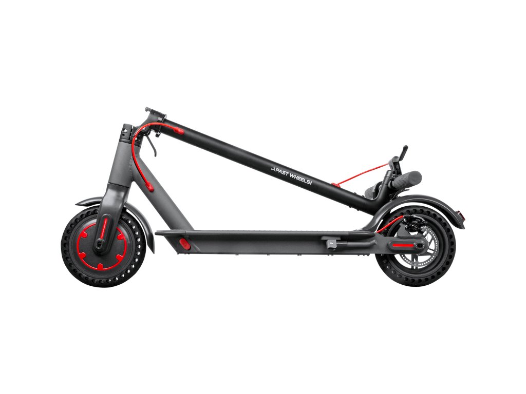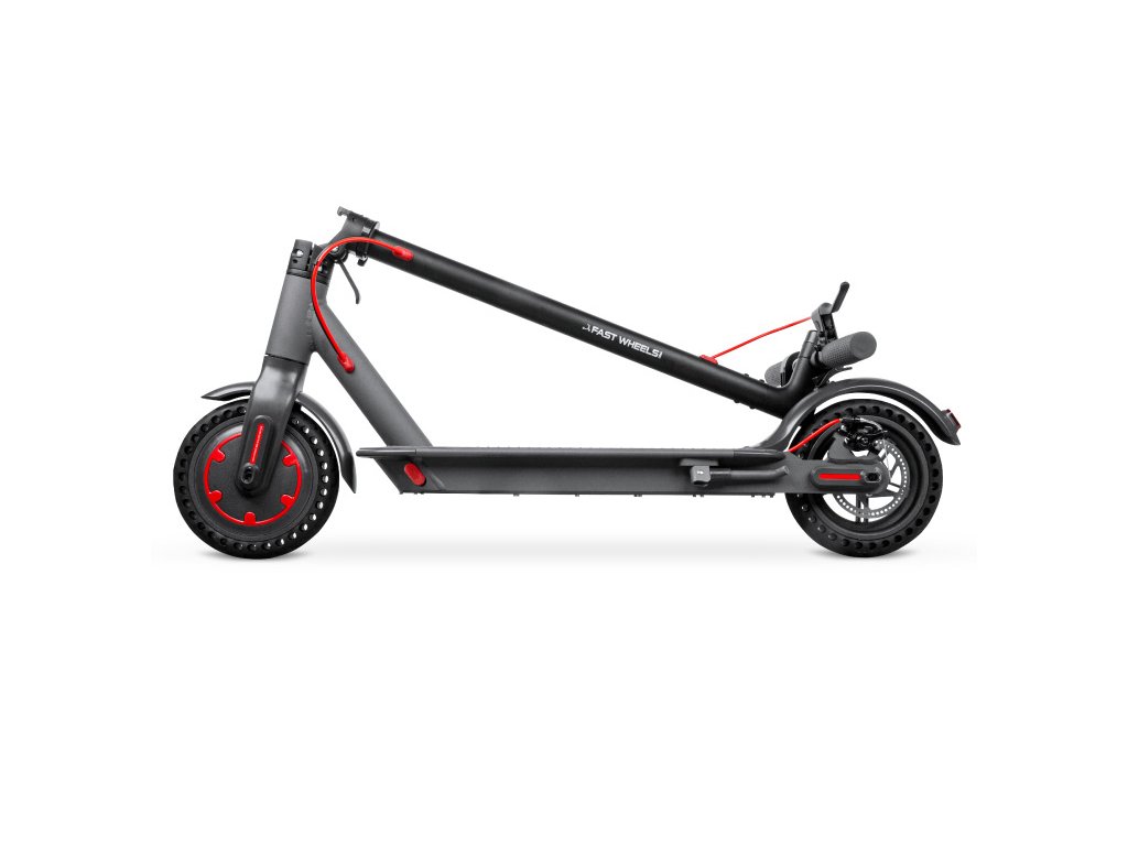 A Fast Wheels PRO robogó nagyon könnyen tárolható és szállítható. Összecsukható kialakításának köszönhetően nagyon kevés helyet foglal. Ezenkívül állvánnyal is rendelkezik, így kényelmesen leparkolhatja a robogót, ahol csak akarja. -